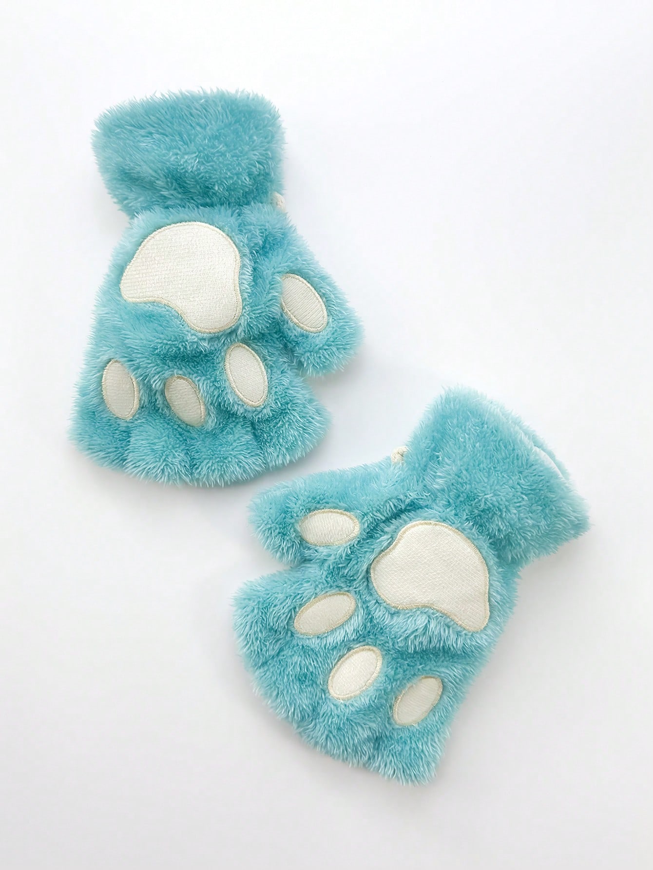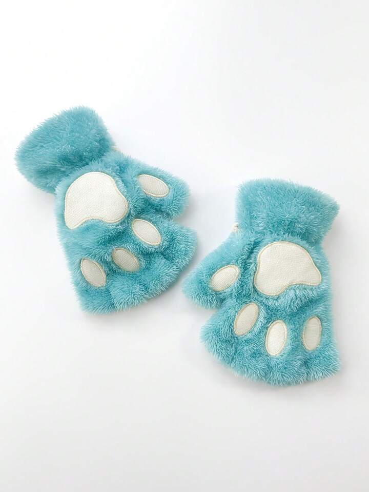 Kawaii زوج من قفازات بدون أصابع مبطنة بشكل كف قطة، مناسبة للارتداء اليومي