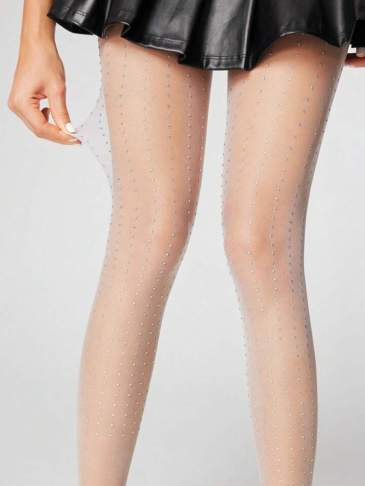 Kawaii زوج من جوارب شبكية للنساء بكريستال أبيض وأسود رأسي مناسبة لجميع المواسم