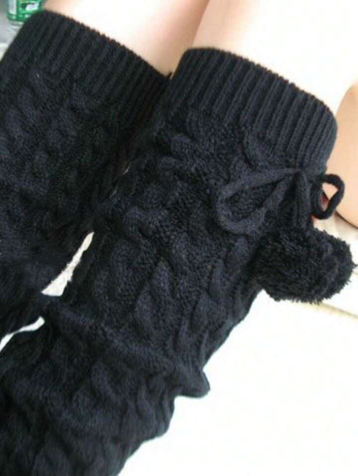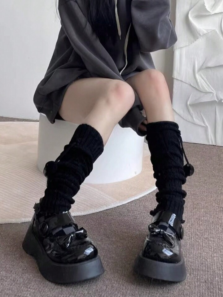 Kawaii مسخن ساق للنساء حياكة مع كرات مخملية 1 زوج