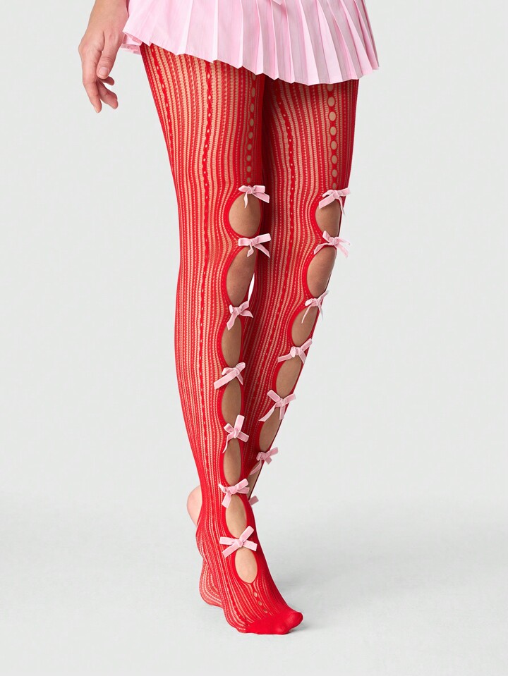 Kawaii زوج جوارب بمقدمة مزدوجة للنساء متغيرة اللون مزخرفة بالشبك والعقدة، 14 ثقب، باللون الأحمر، مناسبة لجميع المواسم