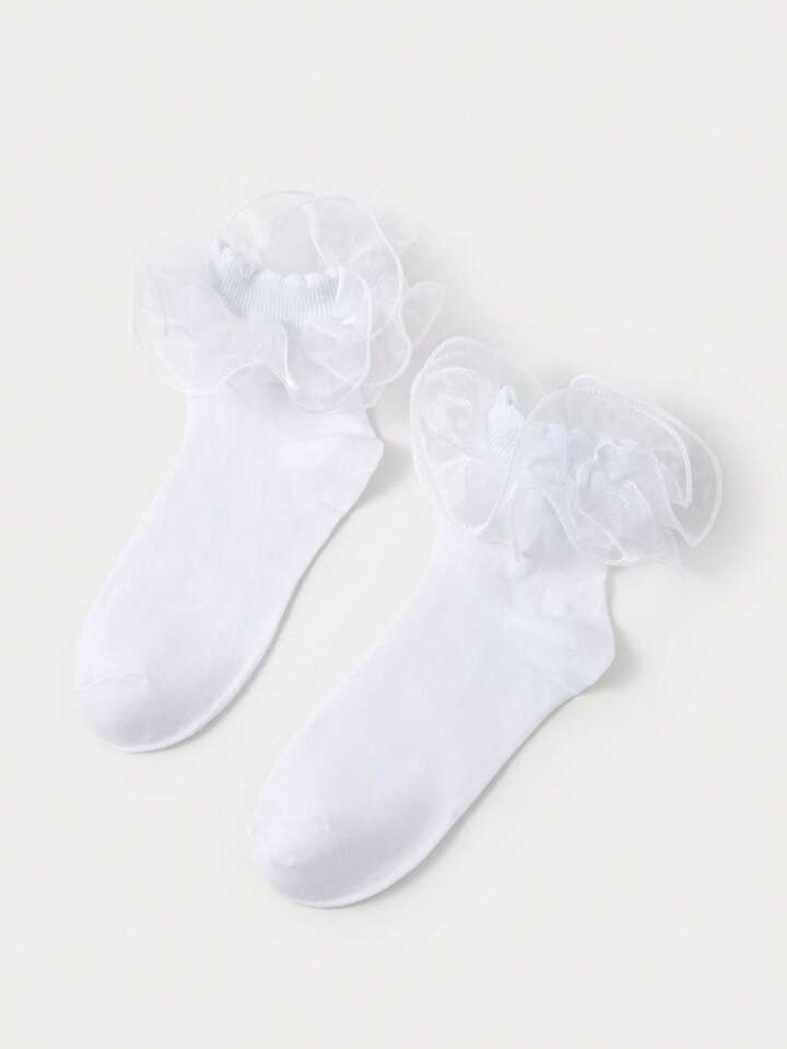 Kawaii زوج جوارب نسائية سادة ذات كشكشة جميلة حتى منتصف الساق