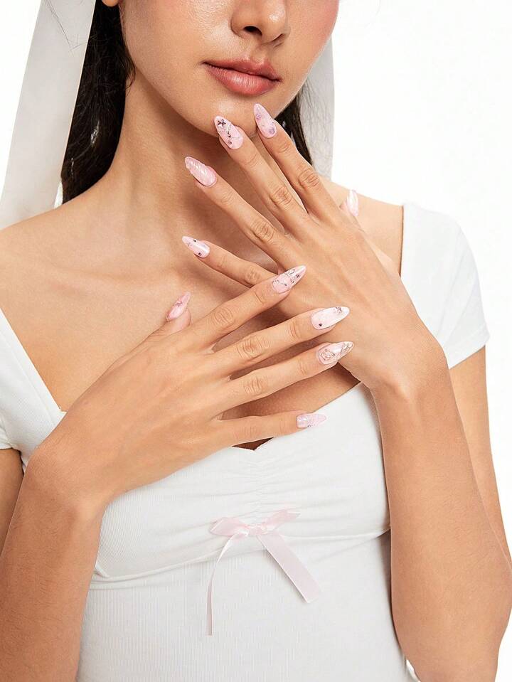 Kawaii 10 قطع أظافر مزيفة بشكل نجمة مصنوعة يدويًا + 3 قطع من اللاصق ذو الوجهين، ملصقات فن الأظافر يدوية مرسومة بالفراشة والنجم، مسحوق صبغة متدرج مع مرآة عاكسة عالية الجودة. مناسبة للحفلات الاحتفالية والعروض الراقصة والارتداء اليومي.