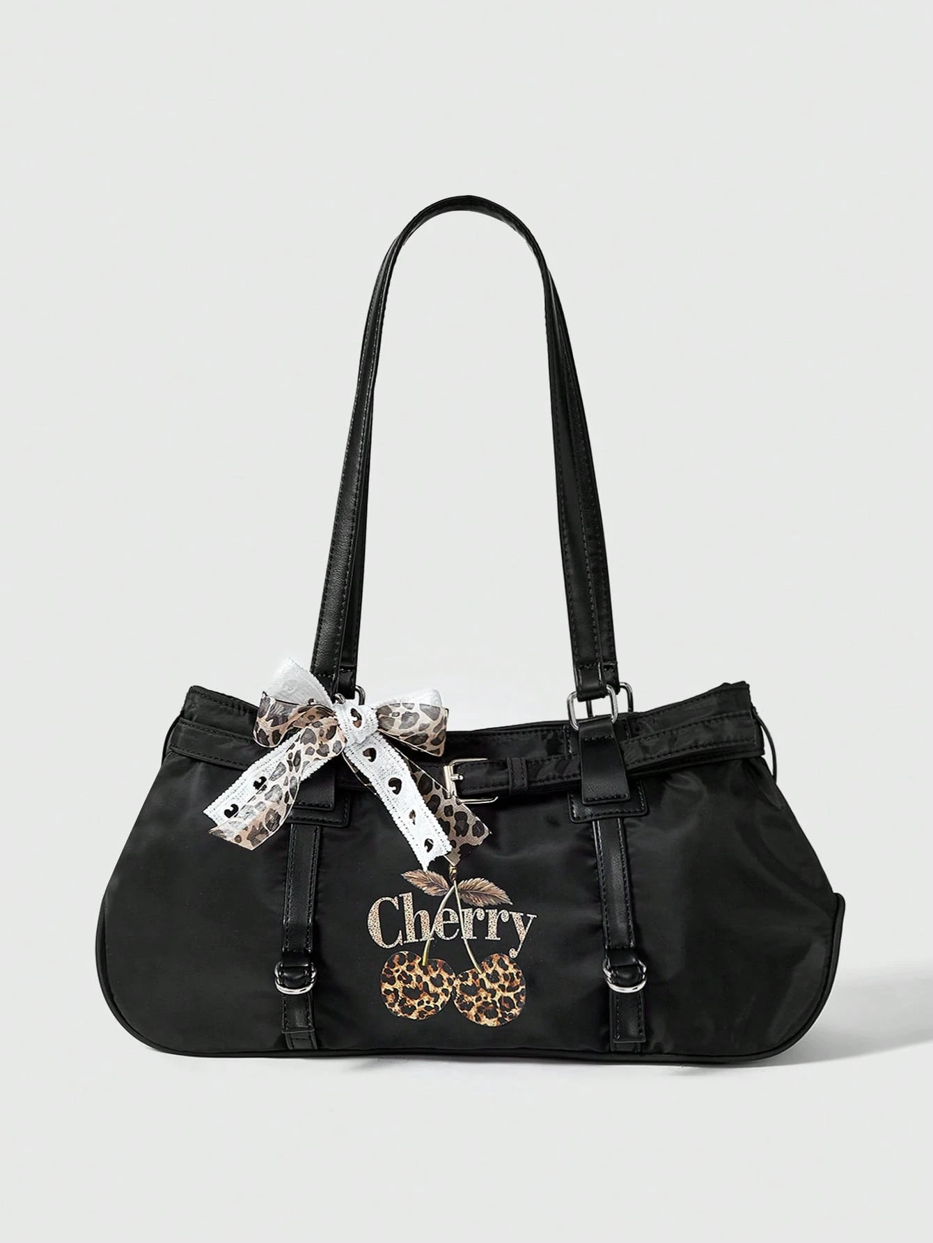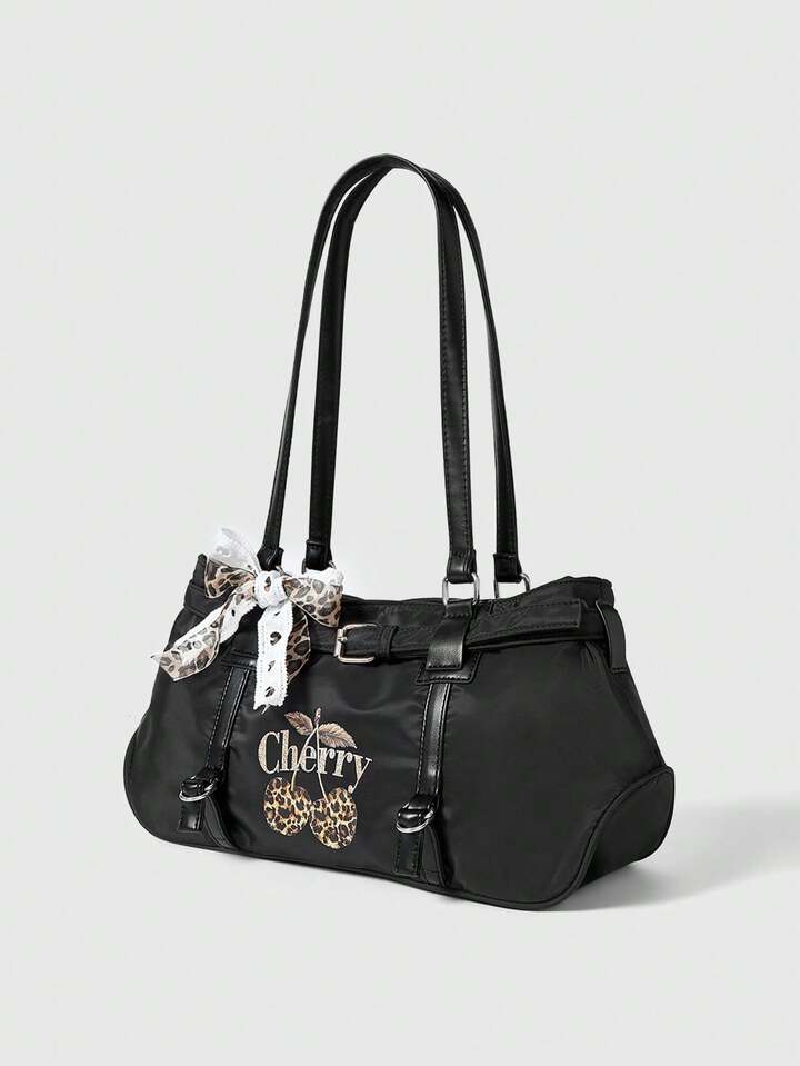 Kawaii حقيبة كتف كبيرة السعة متعددة الاستخدامات بشريط عقدة الزهور الحلوة الرجعية Y2K للنساء
