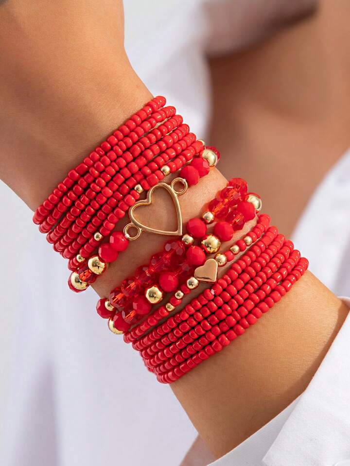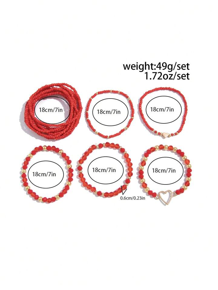 Kawaii 15 قطعة أساور خرزية على شكل قلب بلور أحمر أنيقة ومبسطة للنساء، هدية مناسبة للاحتفالات