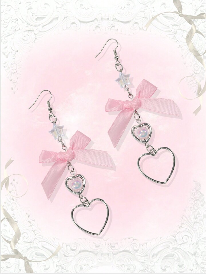 Kawaii زوج أقراط متدلية بشكل فراشة وشكل نجمة وقلب مناسبة لعيد الحب