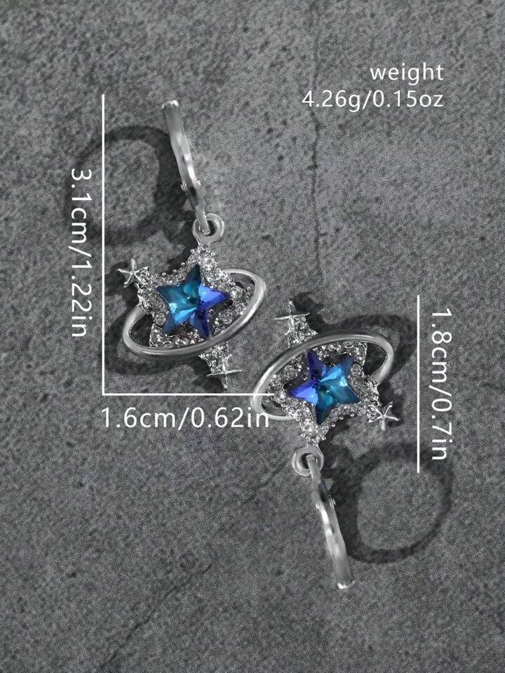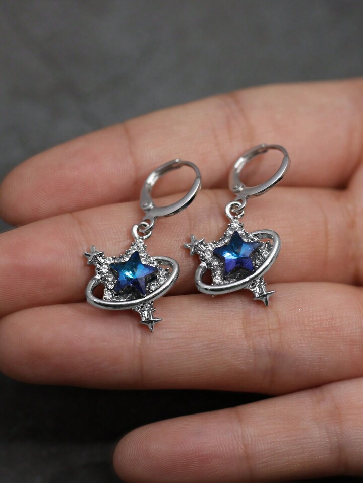 Kawaii أقراط معلقة بشكل نجمة خماسية مرصعة بحجر الراين الزجاجي الأزرق الكبير ، بأسلوب غوثي أوروبي وأمريكي