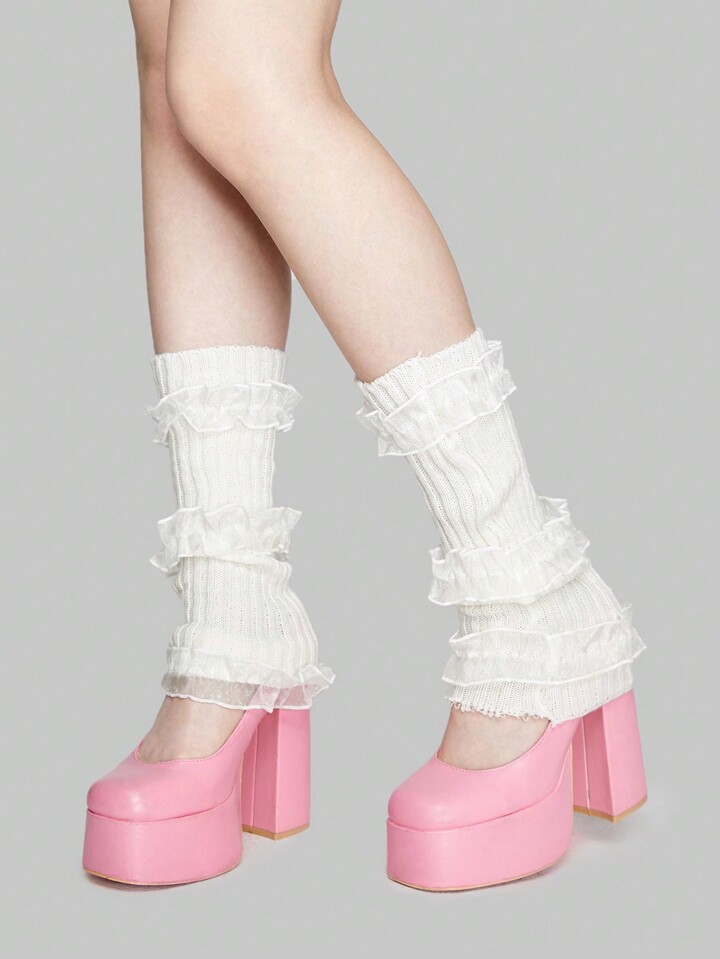 Kawaii مسخن ساق مقلم بكشكش مضلع زوج واحد نساء