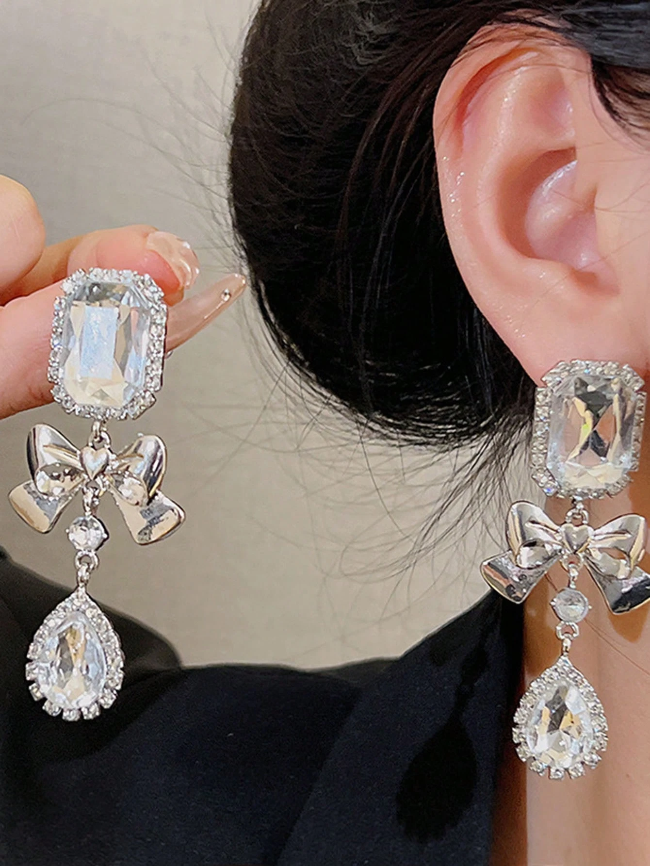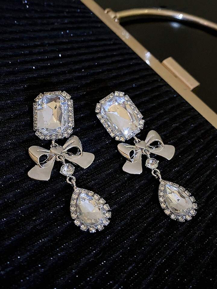Kawaii اقراط للنساء رائع بتصميم عقدة الفراشة معقود مايكرو المرصعة حجر الراين معلق , متعدد الجوانب والاستعمالات أسلوب زوج واحد