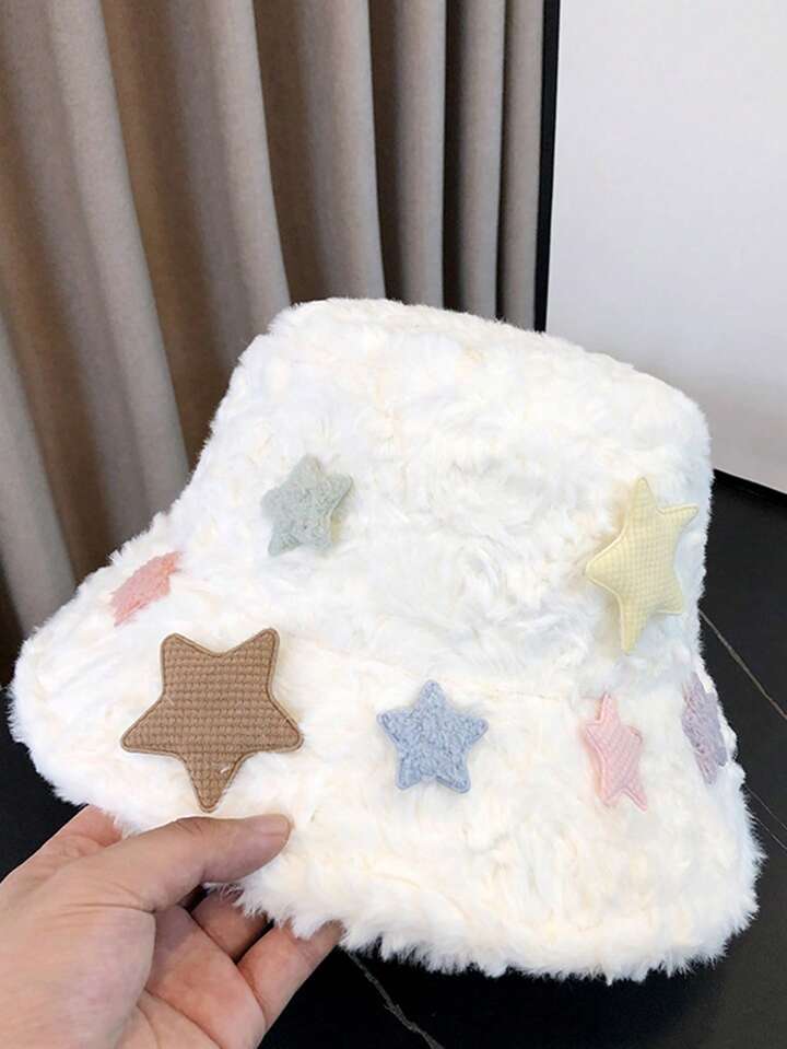 Kawaii قبعة دلو من الصوف بنقشة نجمة واحدة (لون النجمة عشوائي)