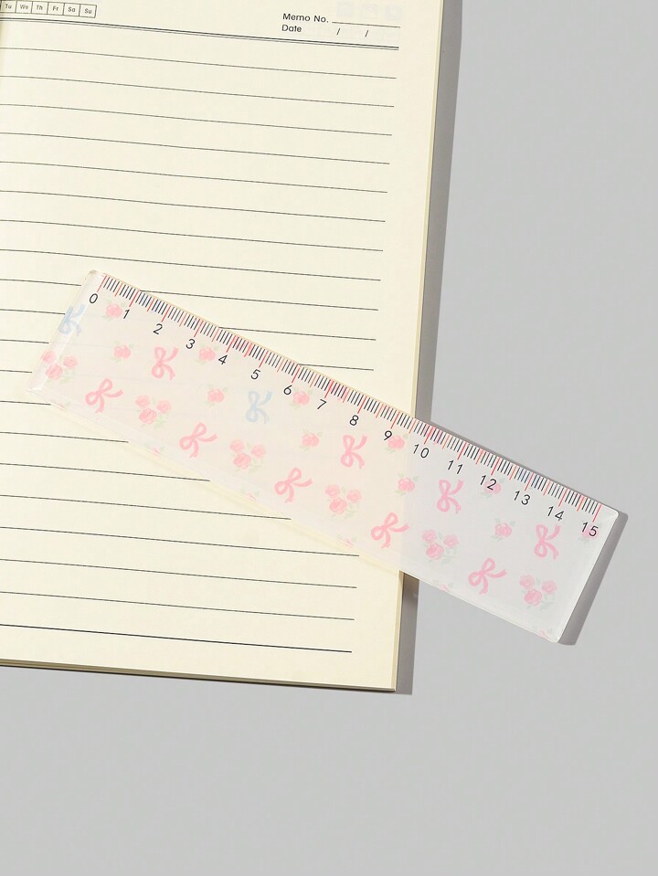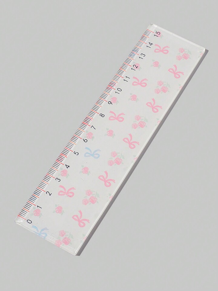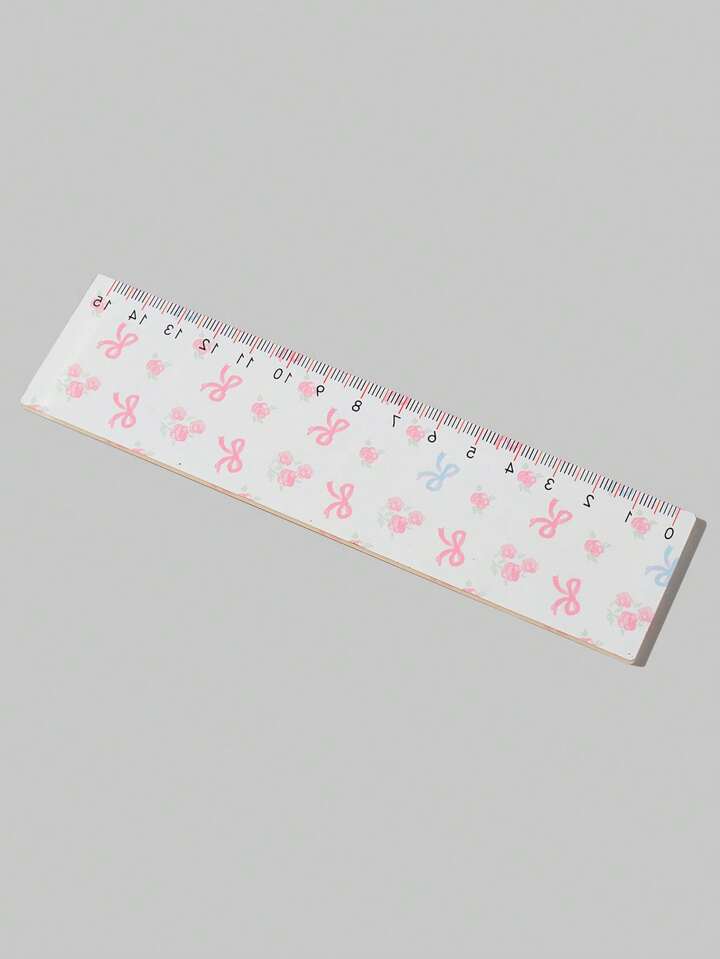 Kawaii مسطرة مقاس واحدة قطعة بطبعة الورد والفيونكة الوردية بشخصيات كرتونية للطلاب عودة إلى المدرسة
