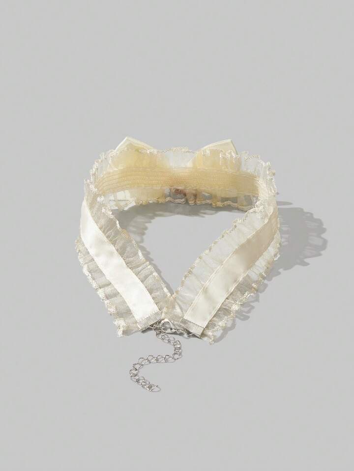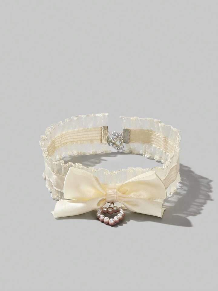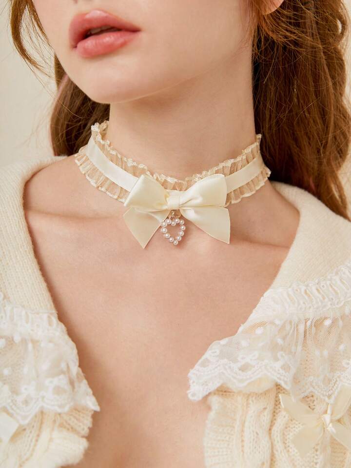 Kawaii حلية عنق قلادة قوس ولؤلؤ صناعي بشكل القلب للنساء ، للاستخدام اليومي