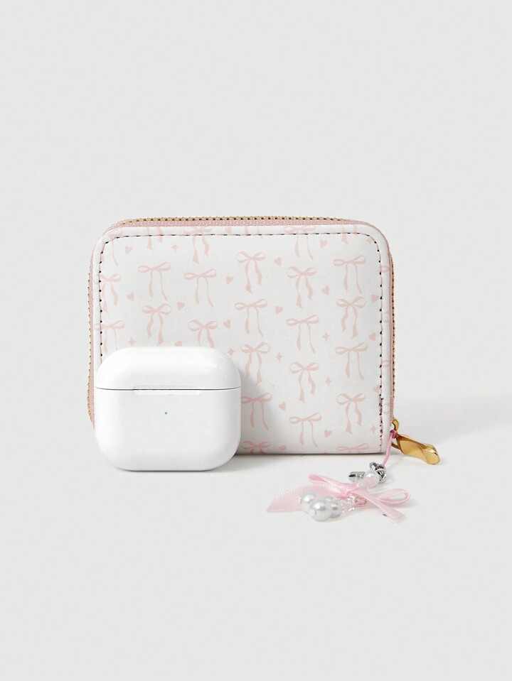 Kawaii حافظة نقود قصيرة زرها بتصميم بسيط طائر الفراشة والقلب للنساء