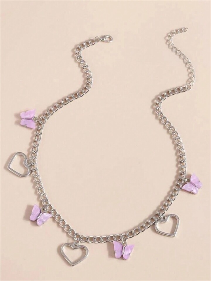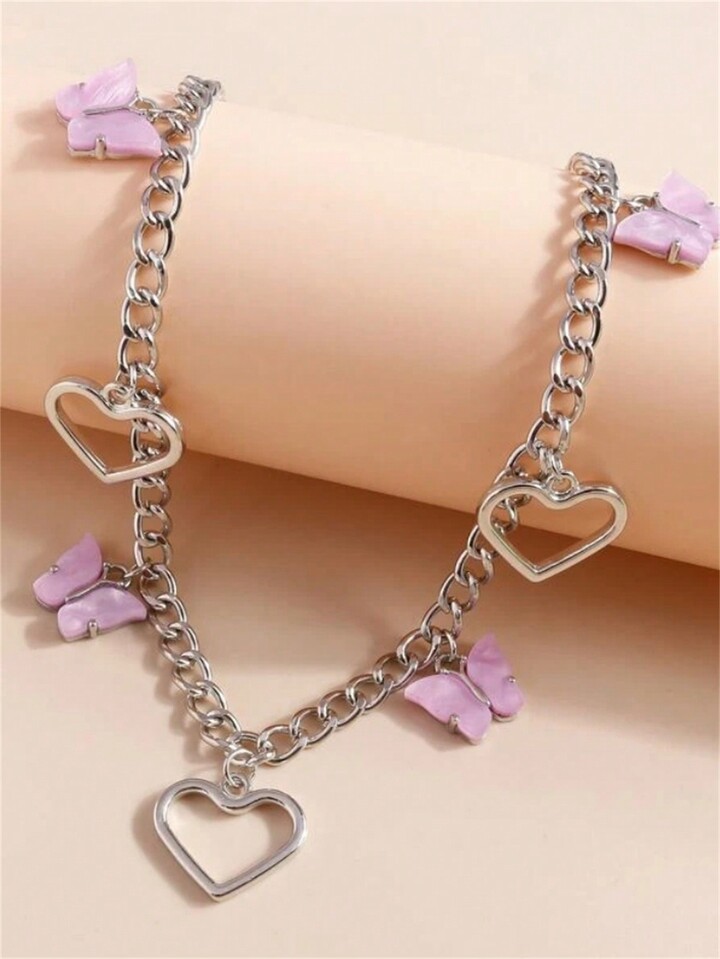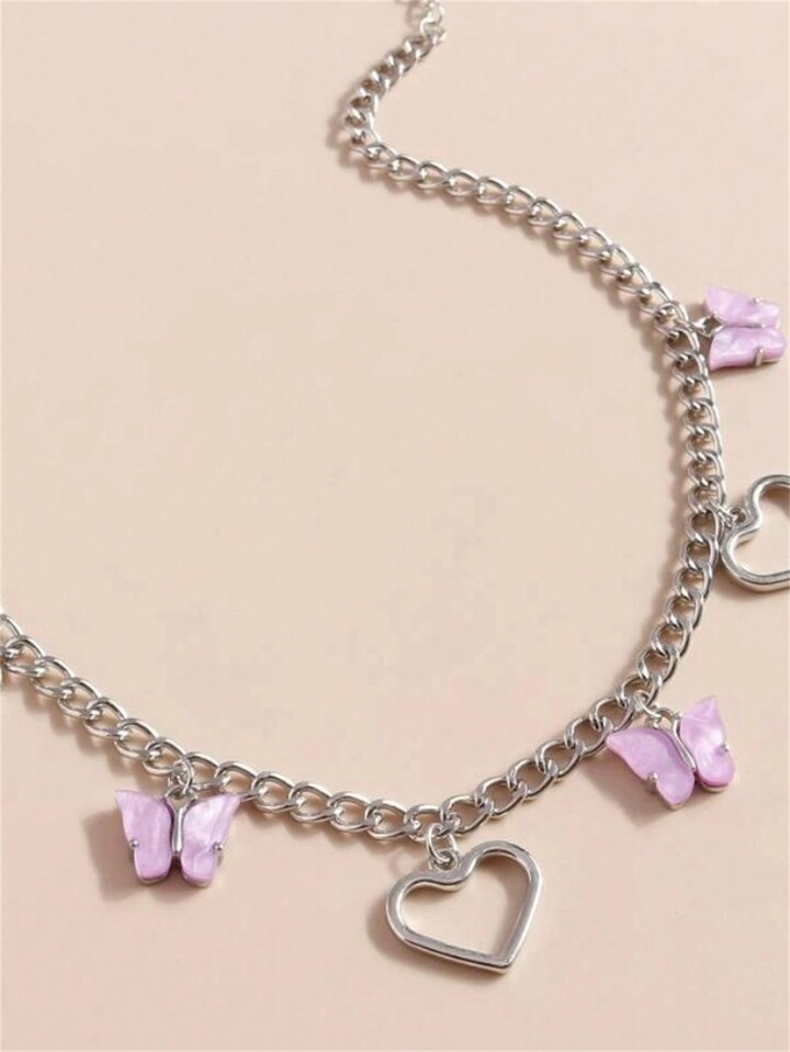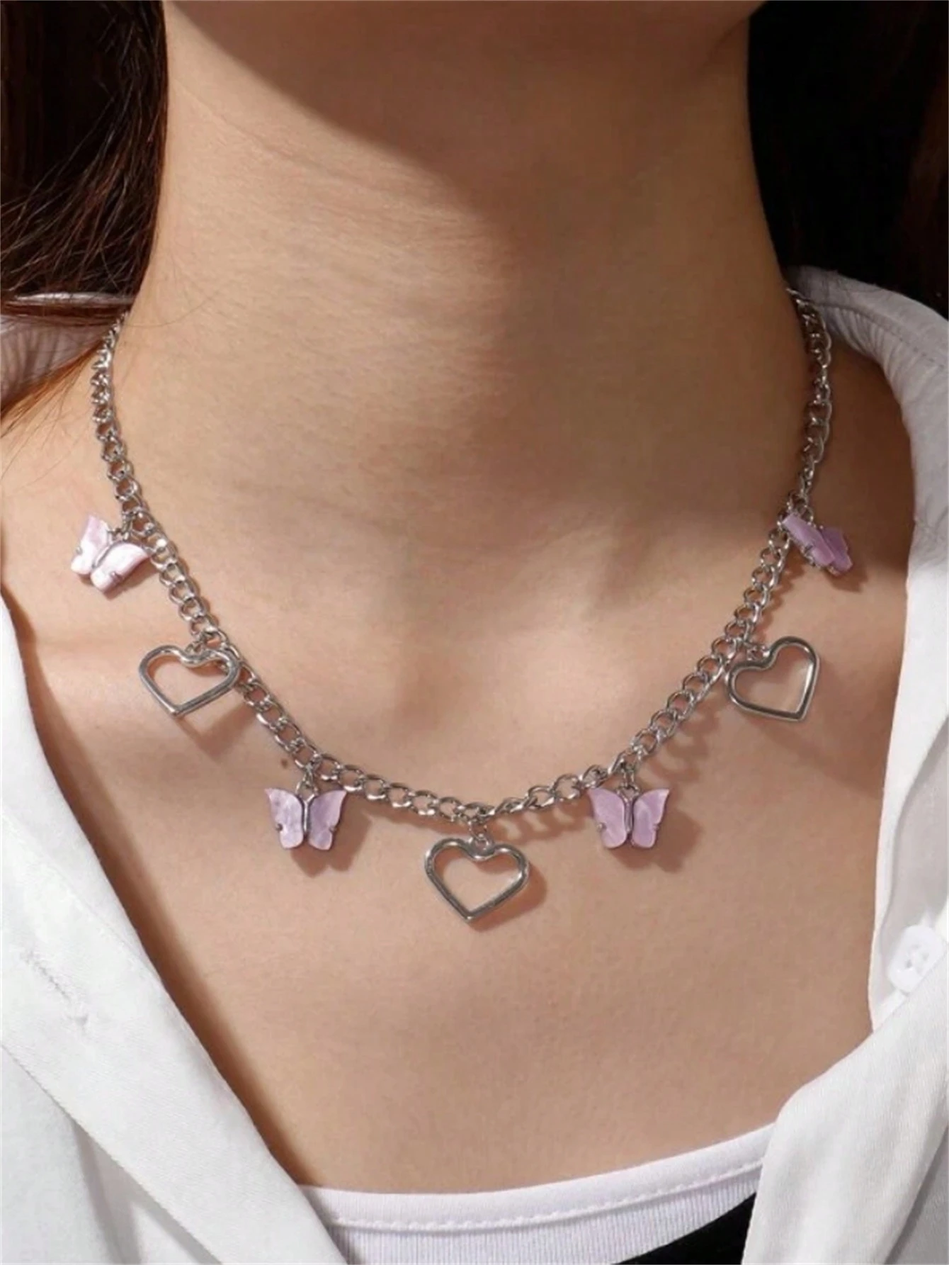 Kawaii قلادة على شكل قلب وفراشة منوعة الأشكال