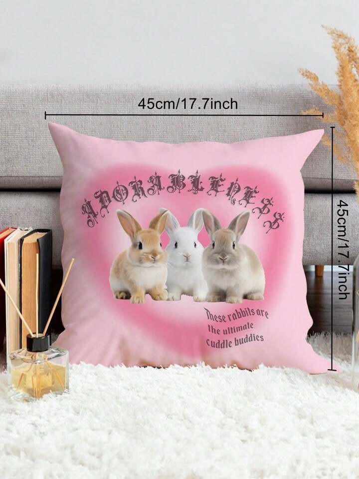 Kawaii غطاء وسادة بدون حشوة بطباعة ارنب رسوم كارتون قطعة واحدة