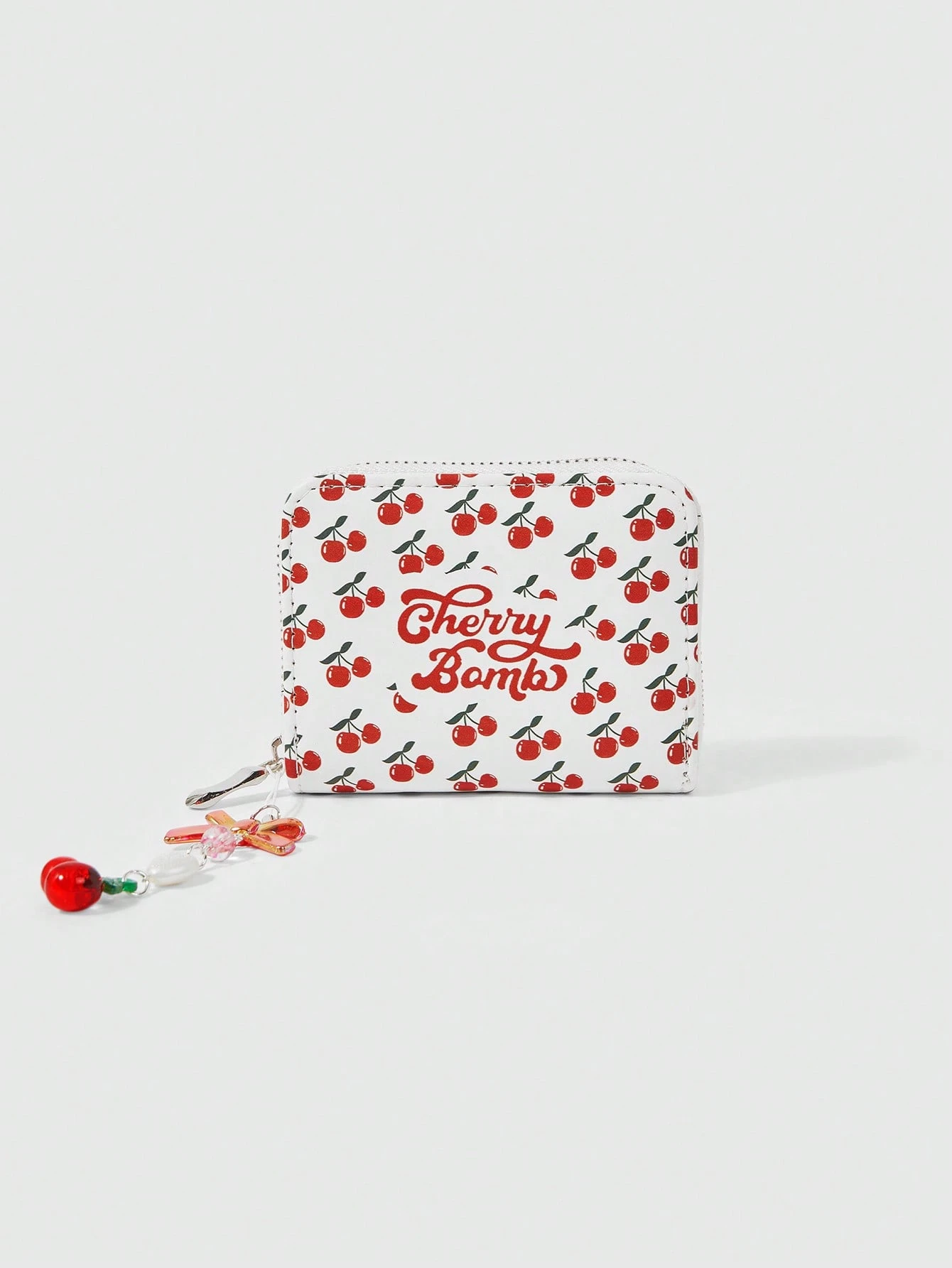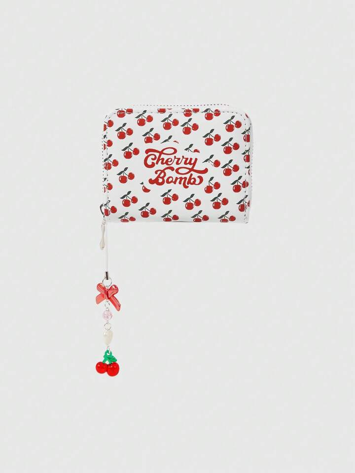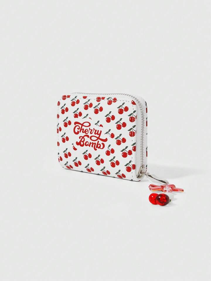 Kawaii حافظة عملات مزينة برسمة الكرز وتميمة الفراشة، محفظة نسائية مزودة بسوستة