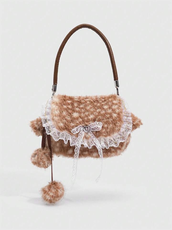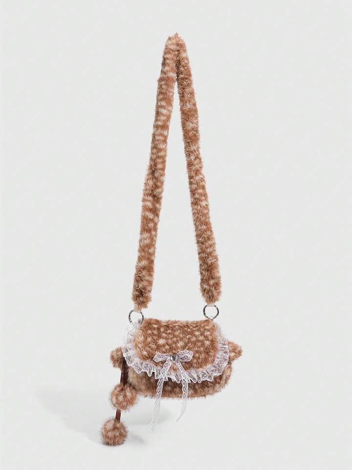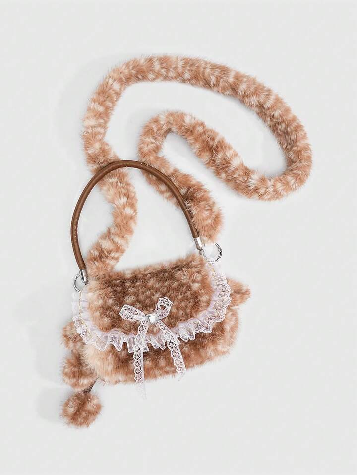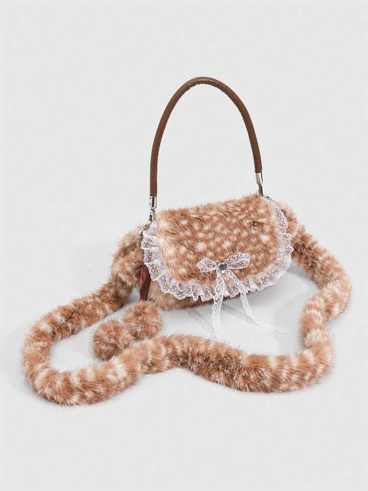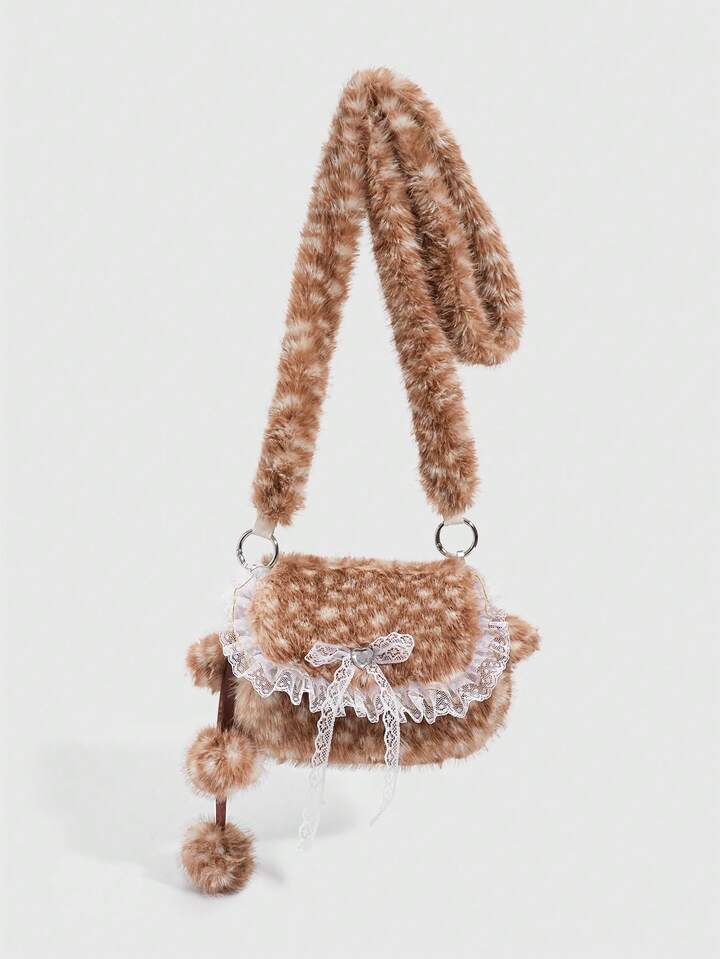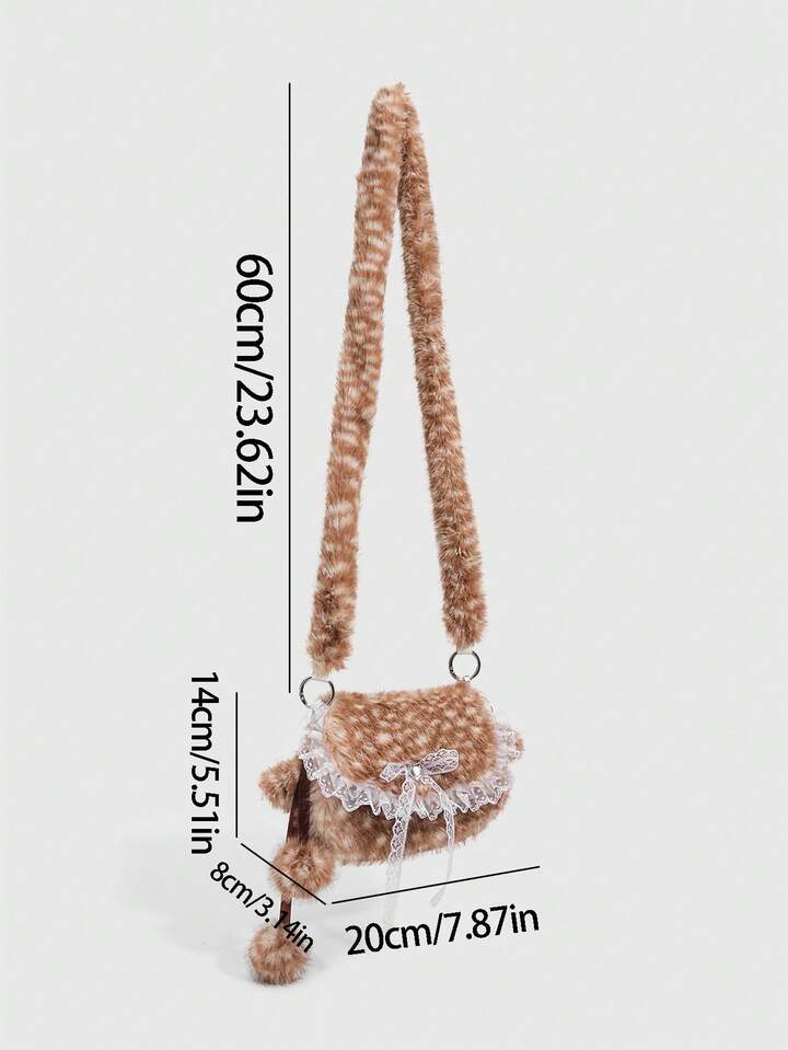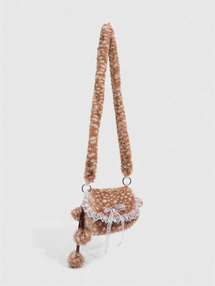 Kawaii حقيبة كتف من الفرو الناعم بشكل فتاة جميلة، حقيبة كتف فرو صغيرة على شكل غزال للموسم الخريفي والشتوي، حقيبة فتاة مدرسية على شكل غزال للموسم الخريفي والشتوي وعيد الميلاد