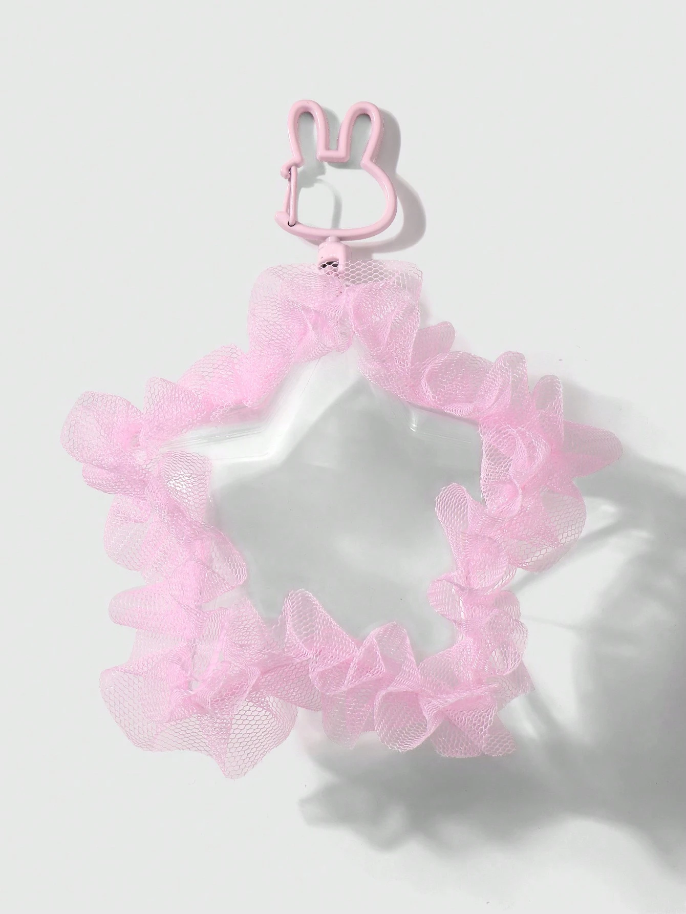 Kawaii قطعة واحدة إطار صور أنيق حامل شفاف بتصميم نجمي من الشبك الأنيق عالي الجودة باللون الوردي، مع قلادة أرنب قابلة للفك كقلادة حقيبة، مناسبة للنساء والفتيات للارتداء اليومي، هدية مناسبة للأعياد