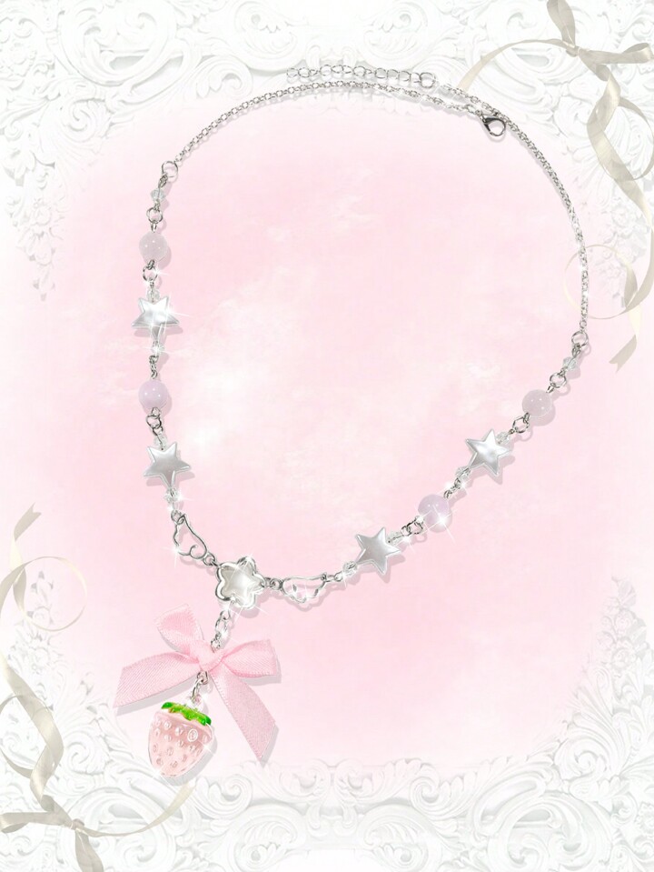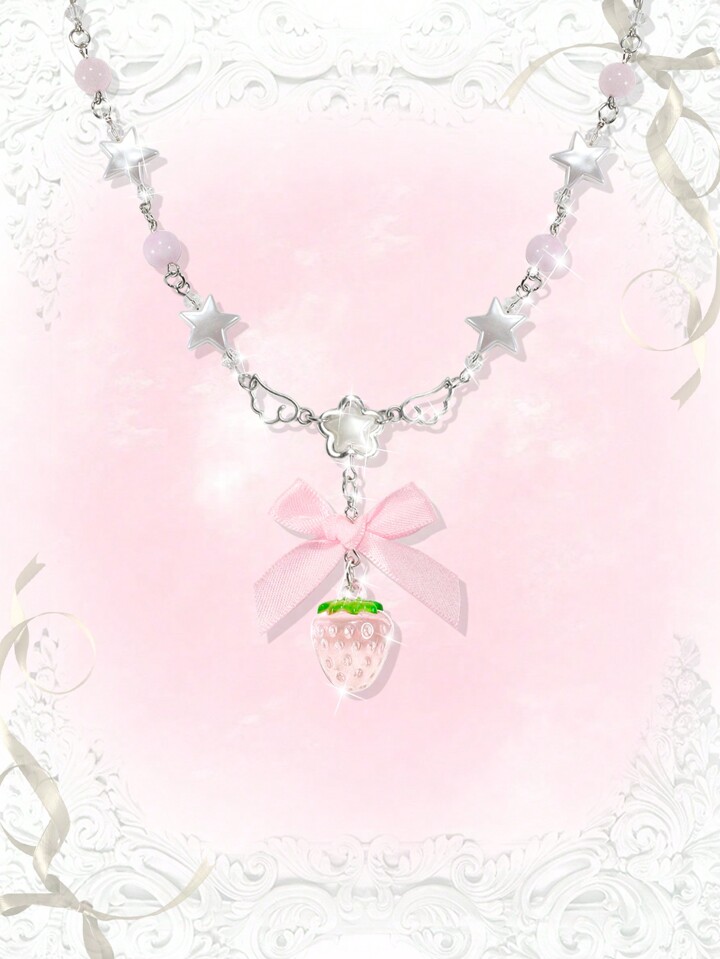 Kawaii قلادة قلادة وردية جميلة بشكل فراولة للاستخدام اليومي عيد الحب