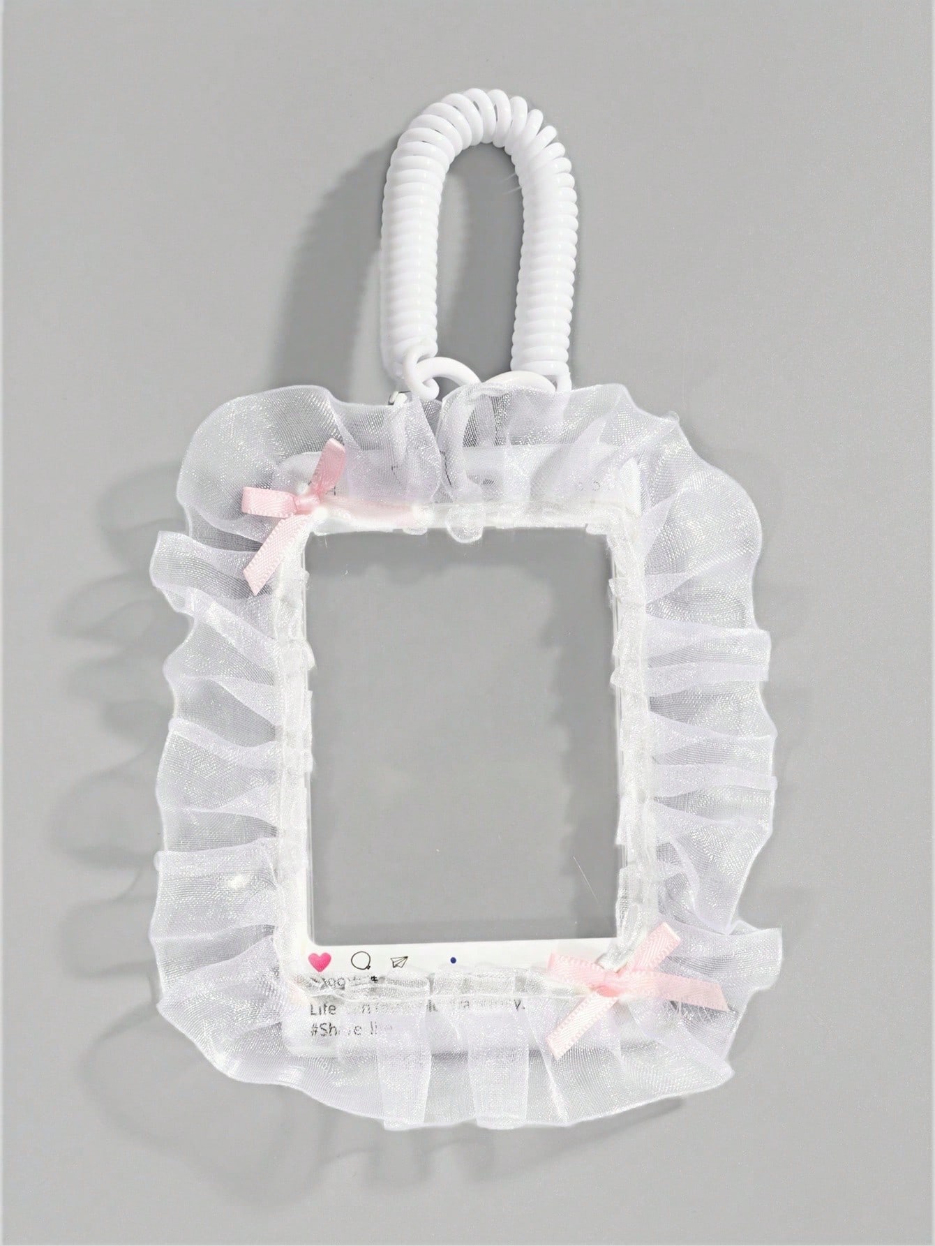 Kawaii حامل بطاقة/سلسلة متدلية بشريط أبيض وفراولة طراز لطيف ، مناسبة كهدية للطلاب في بداية العام الدراسي ولاستخدام الكلية