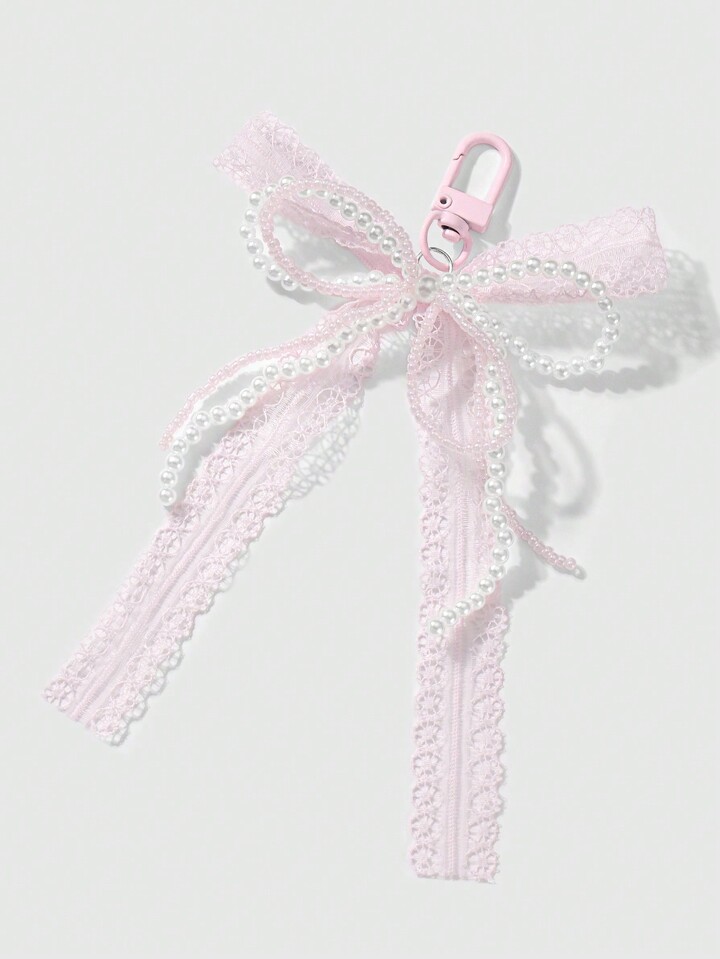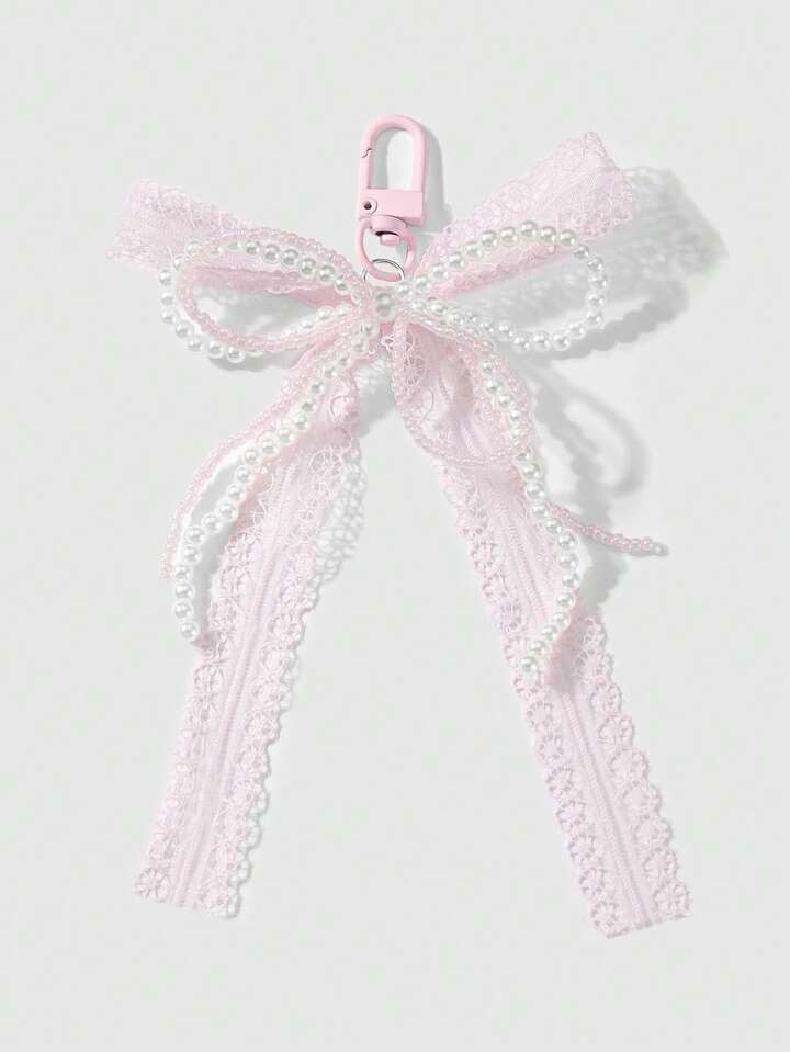 Kawaii 1 قطعة من الخرز اليدوية الأنيقة، الخرز اللؤلؤي، فيونكة الشريط، قلب أكريليك، لهب وزينة من الراين، قلادة على شكل سلسلة مفاتيح وتعليقة للحقيبة - إكسسوار عملي وأنيق مناسب للنساء والفتيات للاستخدام اليومي أو كهدية
