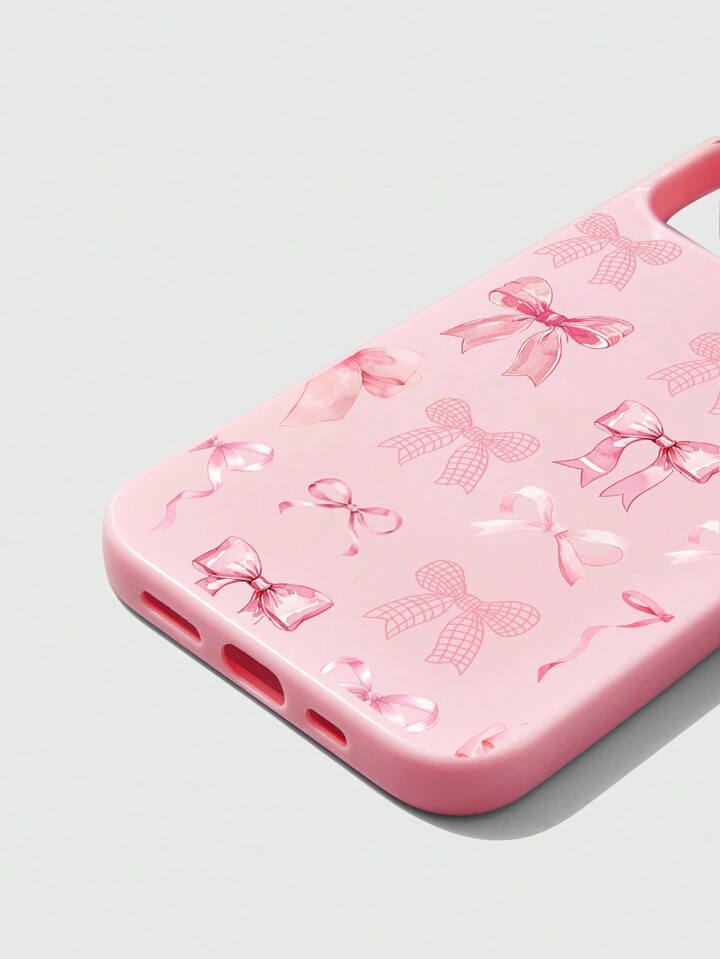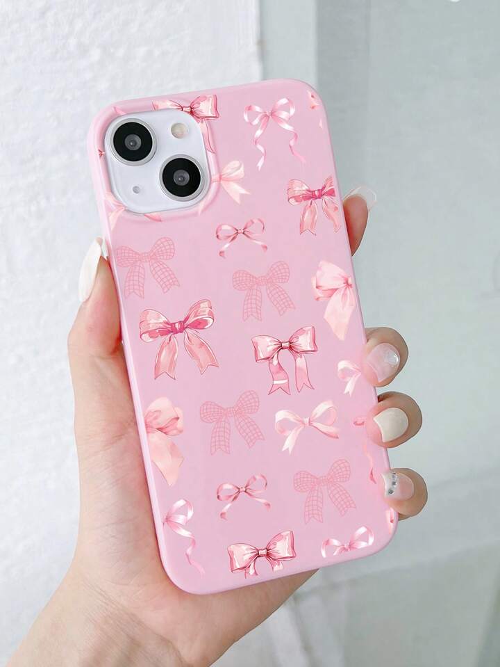 Kawaii قطعة واحدة، كفر هاتف وردي مزين بفيونكة، متوافق مع هواتف أيفون 11 و12 و13 و14 و15 برو ماكس