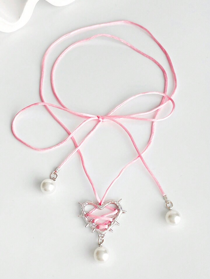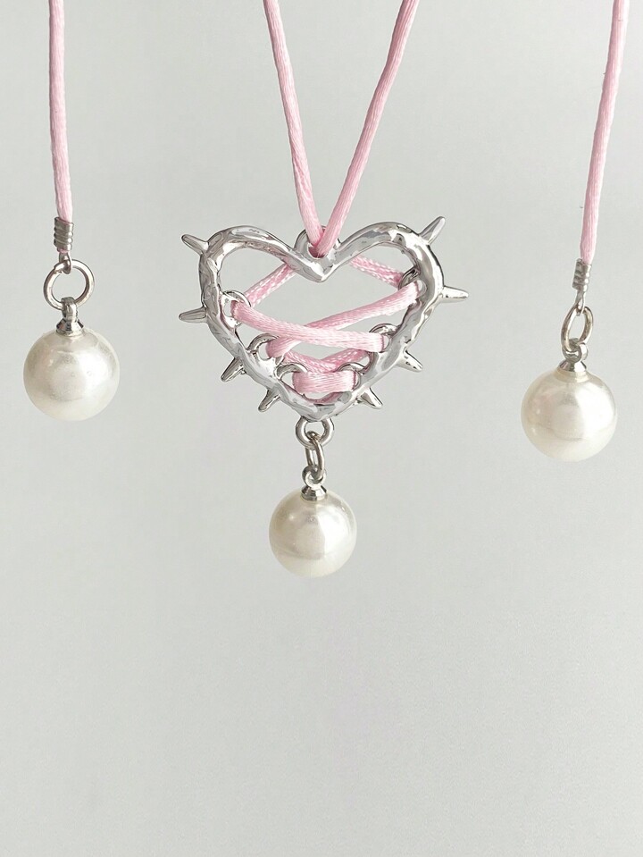 Kawaii قلادة أزياء بتصميم قلب من سبيكة حديدية وتزيين لؤلؤة وهمية للنساء للزينة اليومية