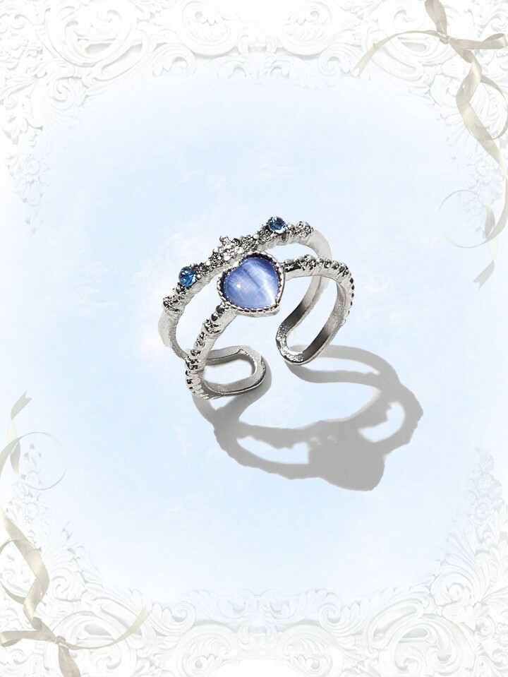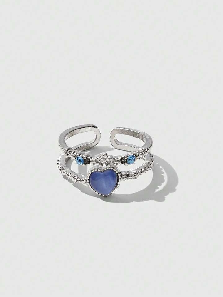 Kawaii خاتم مفتوح موضة سبائك الزنك بديكور حجر الراين قلب للنساء الزخرفة اليومية قطعة واحدة