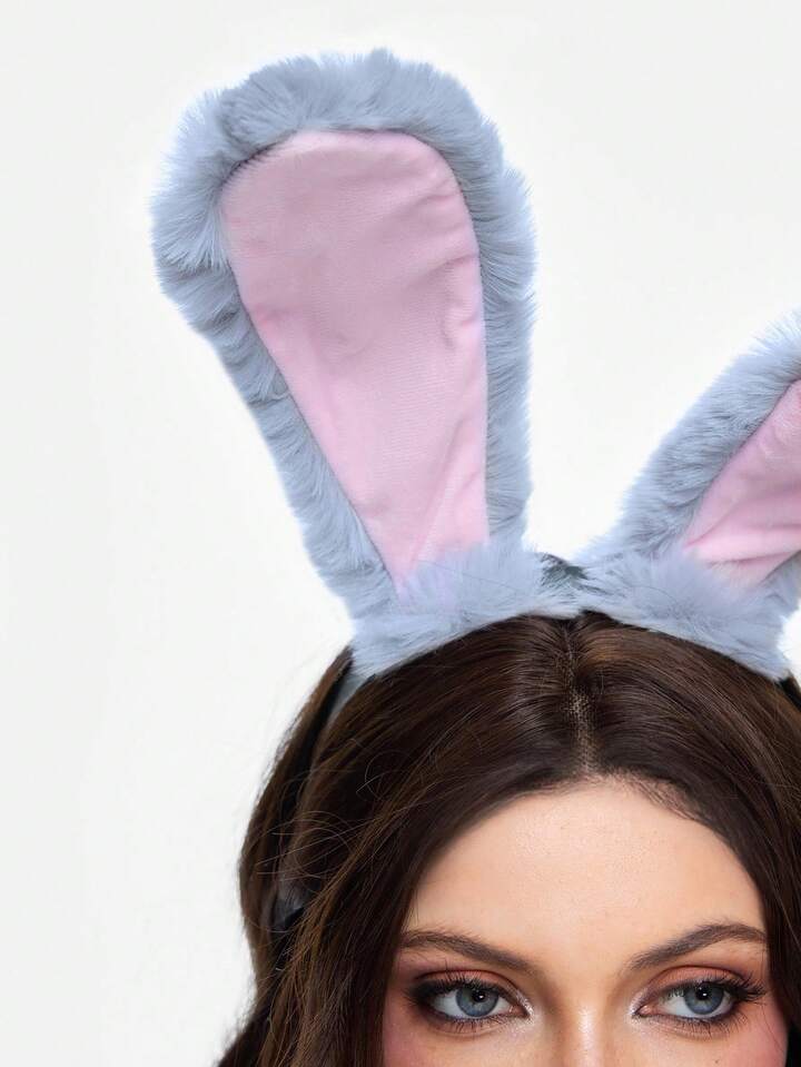 Kawaii 1 قطعة شريط رأس أذن أرنب وردي رمادي أنيق