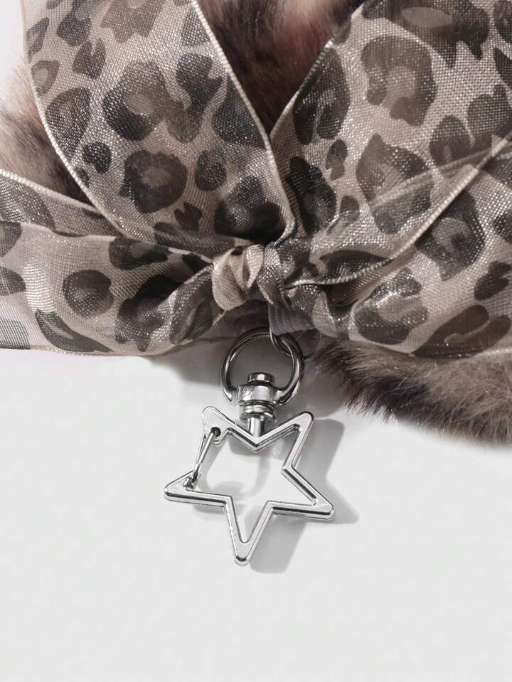 Kawaii 1 قطعة ذات طابع أنيق وأسلوب بطبعة نمر شكل قلب مرصع بالدانتيل وشريطة عقدة ونجمة، قلاّدة للحقيبة، ذات جمال جمالي مناسب للنساء، للاستخدام اليومي والهدايا