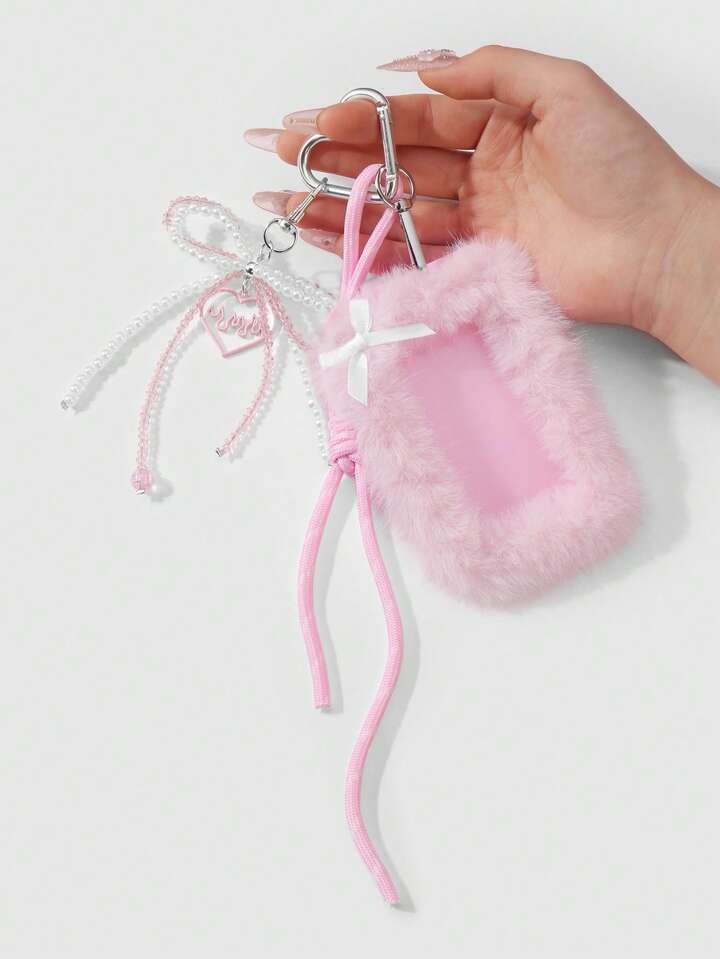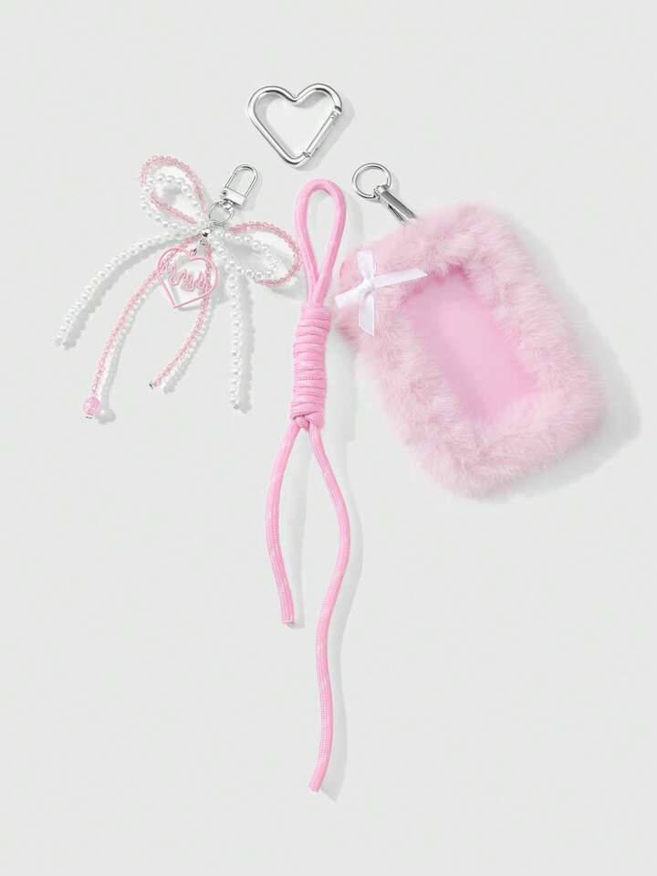 Kawaii قطعة واحدة من فيونكة يدوية الصنع بيضاء فخمة مرصعة باللؤلؤ الاصطناعي والكريستال، حامل بطاقة قلب ناعم وقابل للتعديل بشكل طائر الفلامنجو وكذلك سلسلة مفاتيح وتعليقة للحقيبة، مناسبة للنساء في المكتب والطالبات واليومي والهدايا