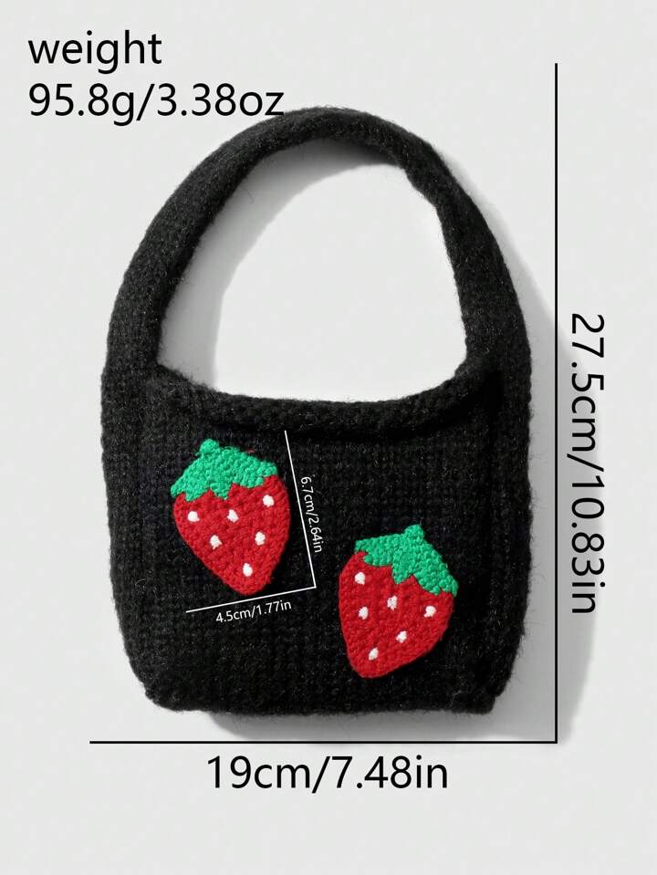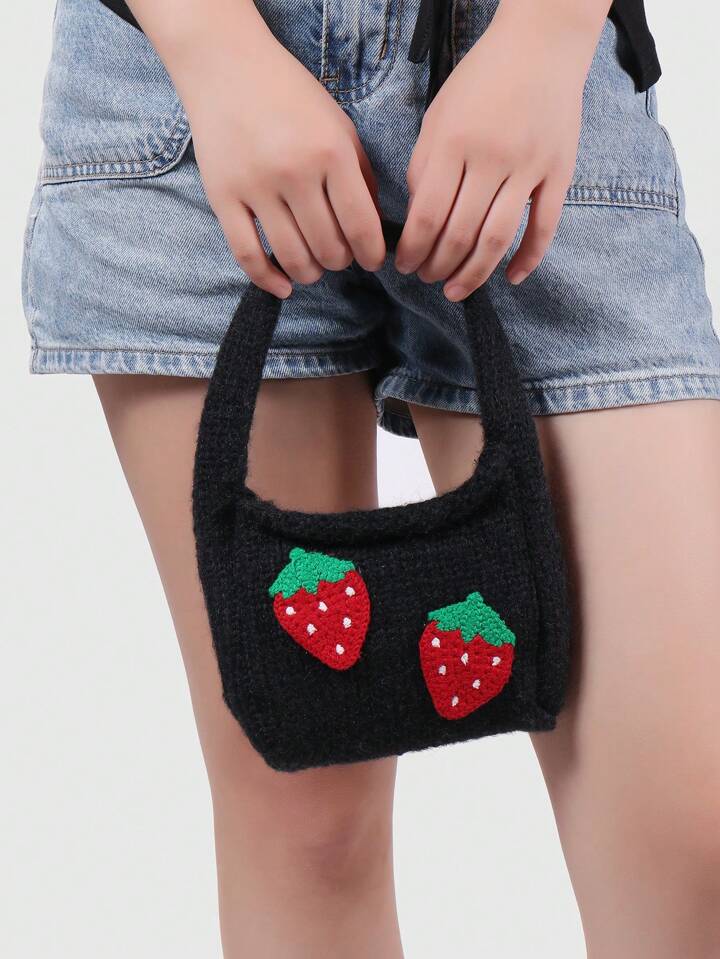 Kawaii زينة عقدة الفراشة كروشيه أسود فاخر بأسلوب كوري رجعي بسيط وجميل على شكل فراولة نفخة مناسب للحقيبة اليدوية أو الكتف أو الحمل اليومي للنساء والهدايا في المناسبات