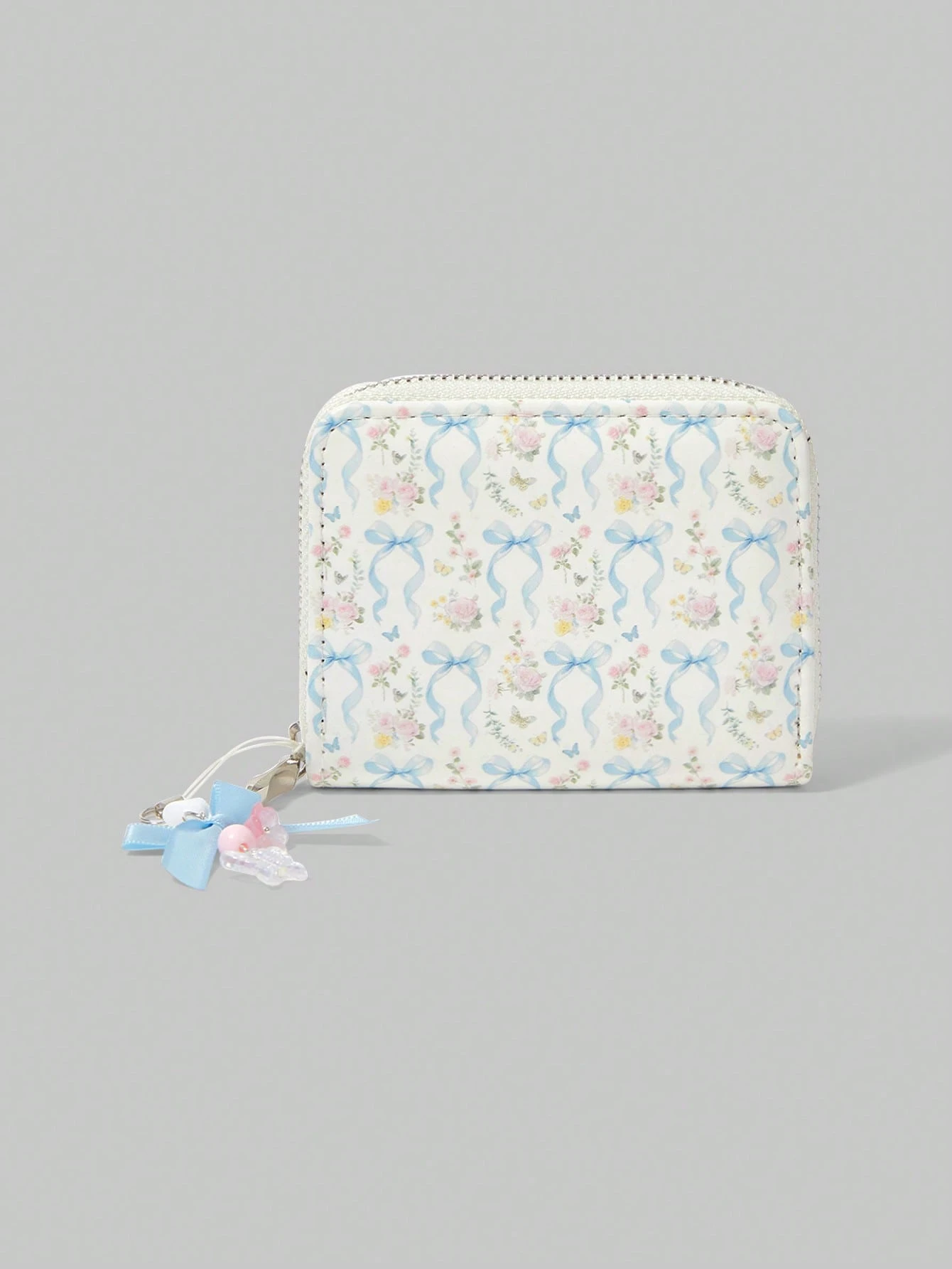 Kawaii محفظة قصيرة ذات زخارف بسيطة من الفراشات والزهور قطعة واحدة ، محفظة نسائية مزودة بسحاب لحفظ العملات