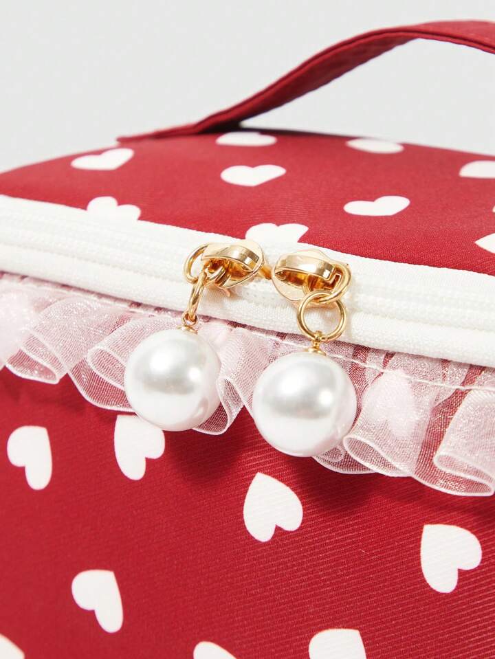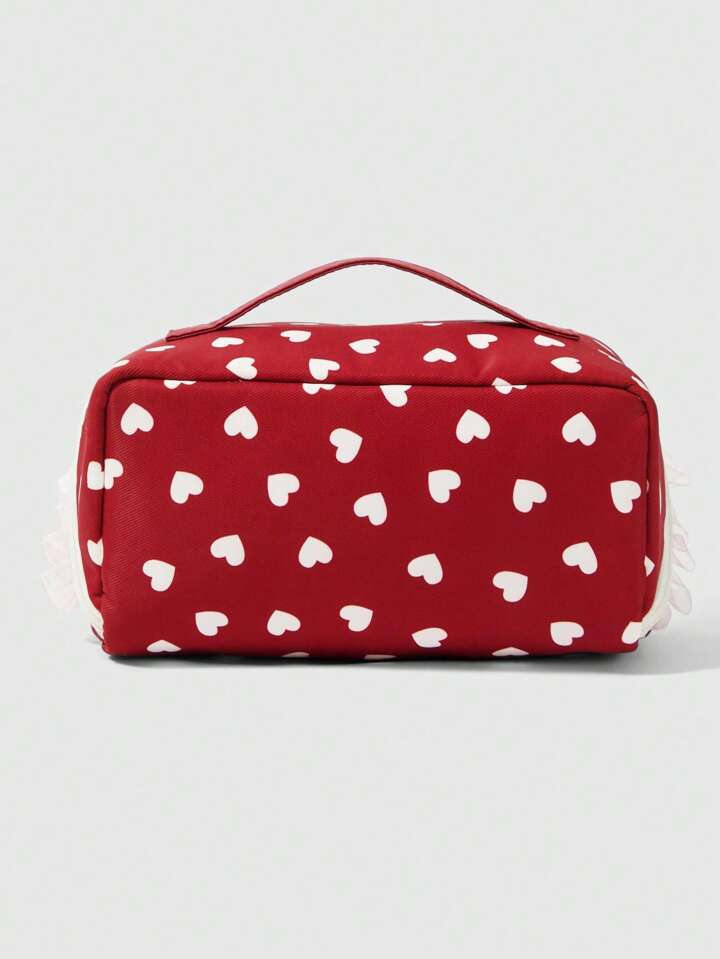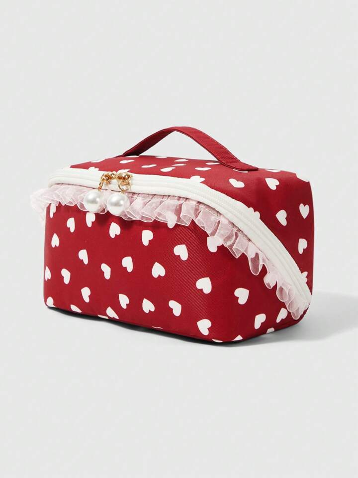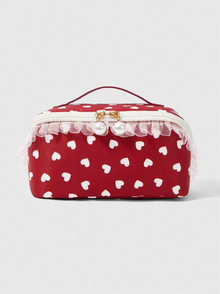 Kawaii 1 حقيبة مستحضرات تجميل سعة كبيرة بتصميم قلب أحمر بسيط للسيدات 1442190