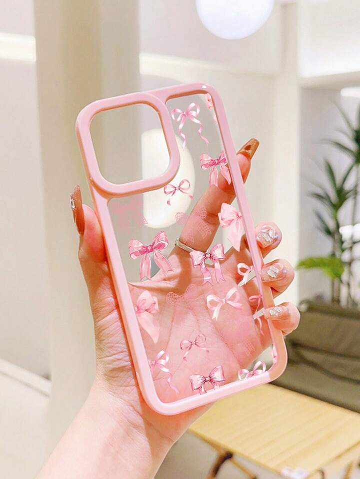 Kawaii غطاء هاتف بنمط فيونكة باللون الوردي متوافق مع هواتف ايفون 11 12 13 14 15 برو ماكس، قطعة واحدة
