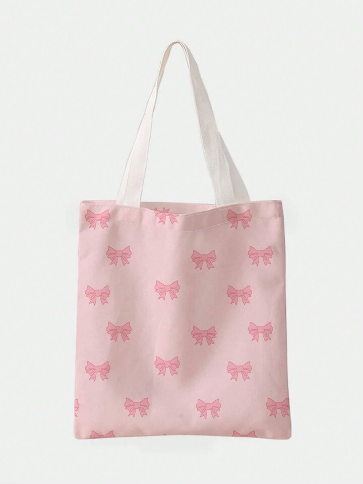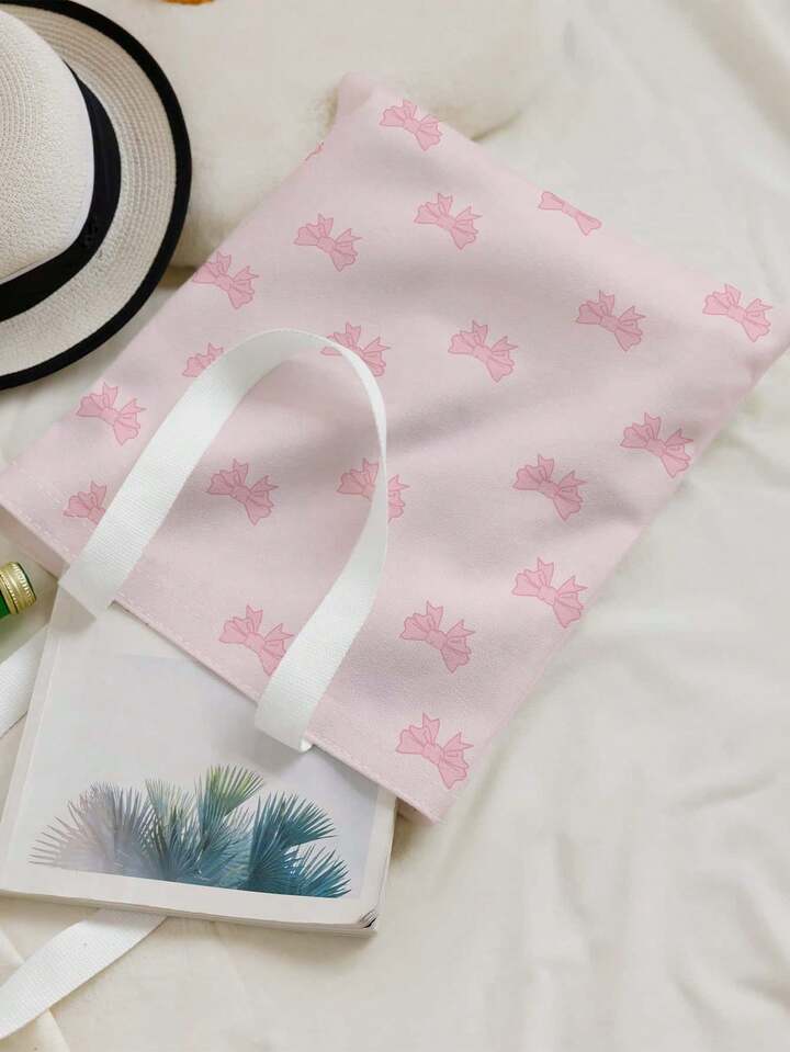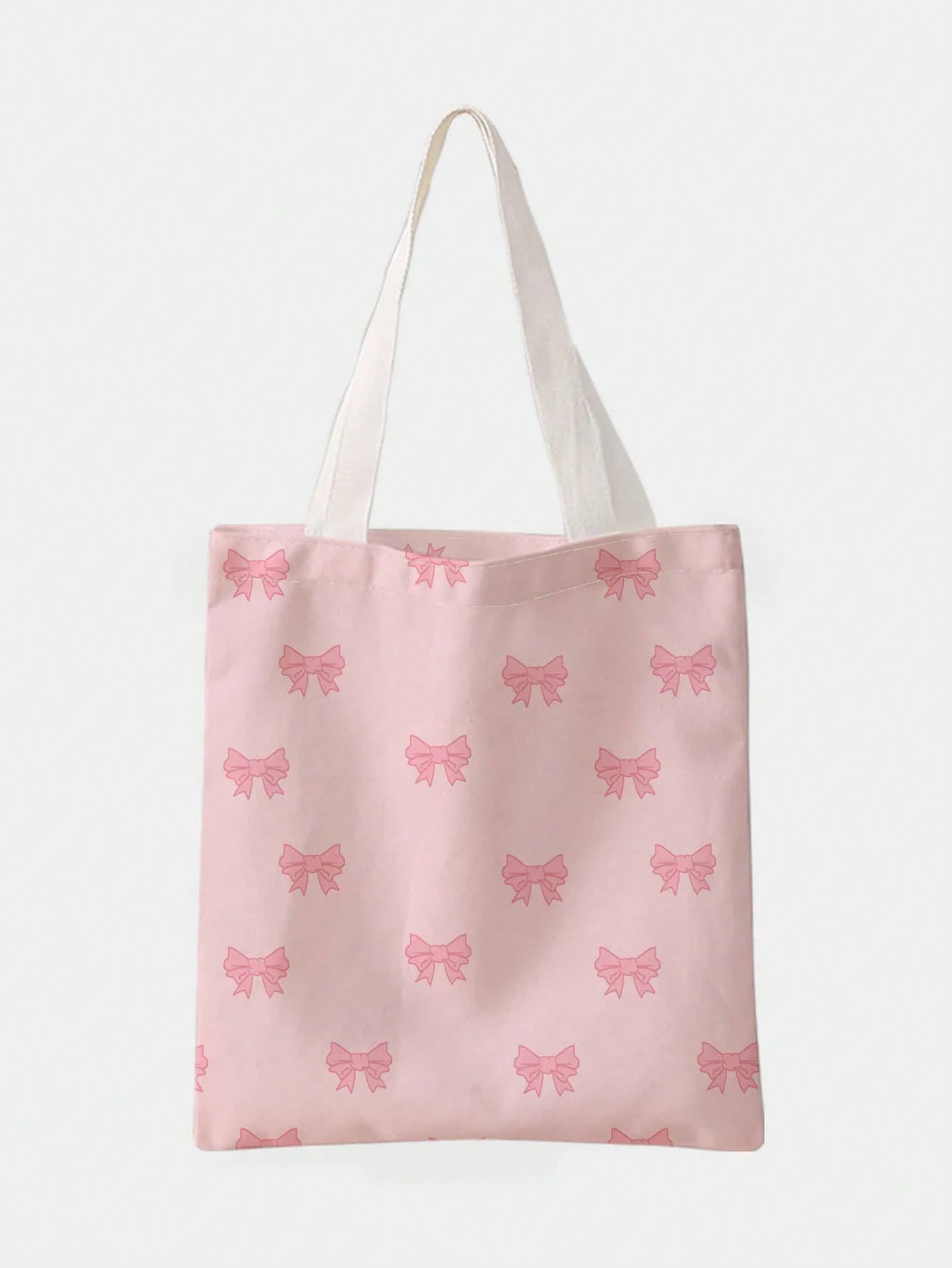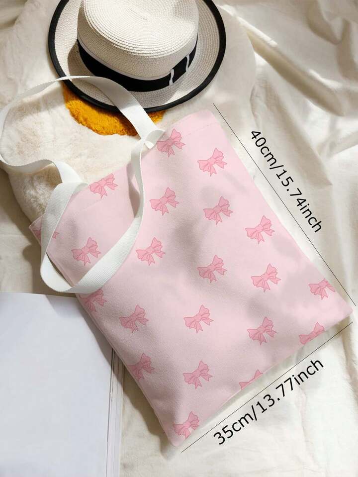 Kawaii قطعة واحدة حقيبة قماشية محبوكة ذات طباعة الجوانب بشكل فيونكة وردية