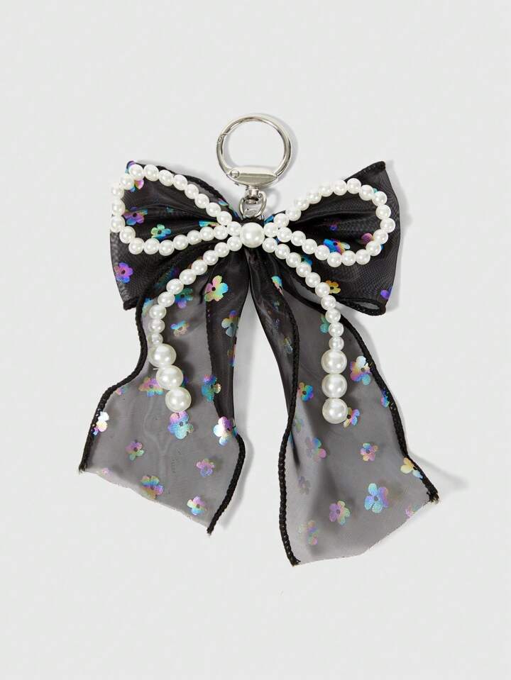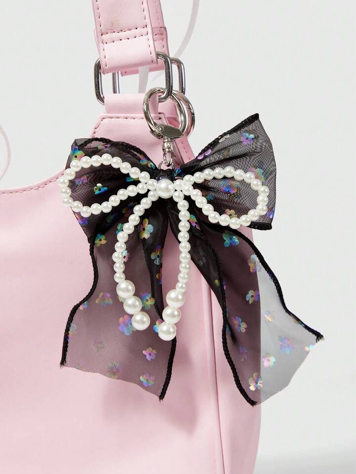 Kawaii 1 قطعة قلادة مفاتيح على شكل فيونكة وخرز وردي