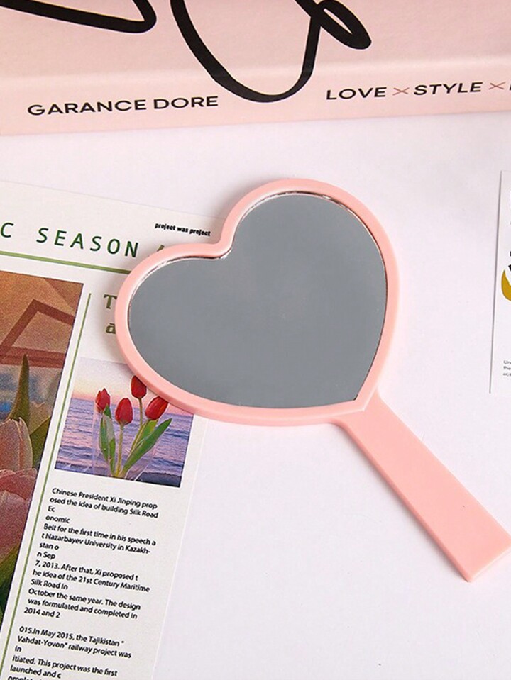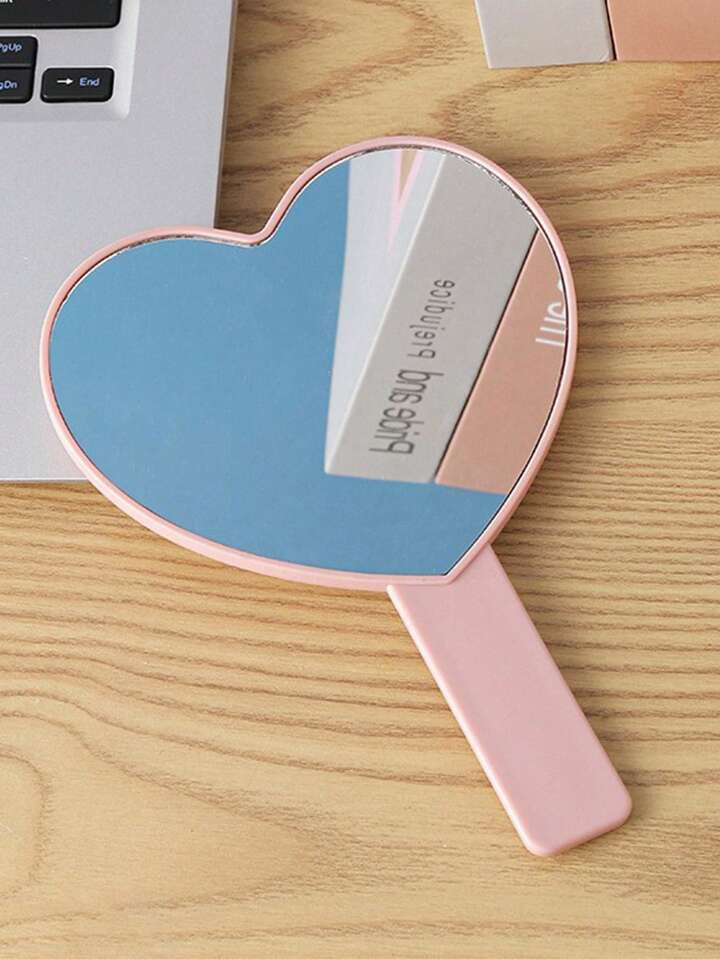 Kawaii مرآة مكياج محمولة بشكل قلب وردي 1 قطعة