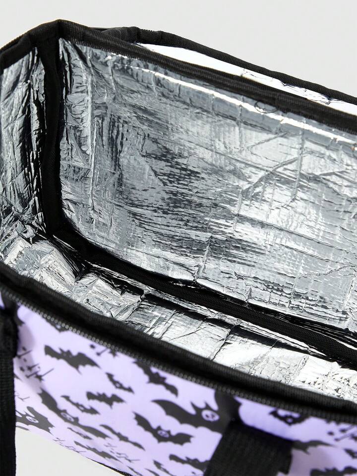 Kawaii حقيبة غداء عازلة بطبعة خفافيش بنفسجية بطراز جوتيك، حقيبة تبريد كبيرة السعة