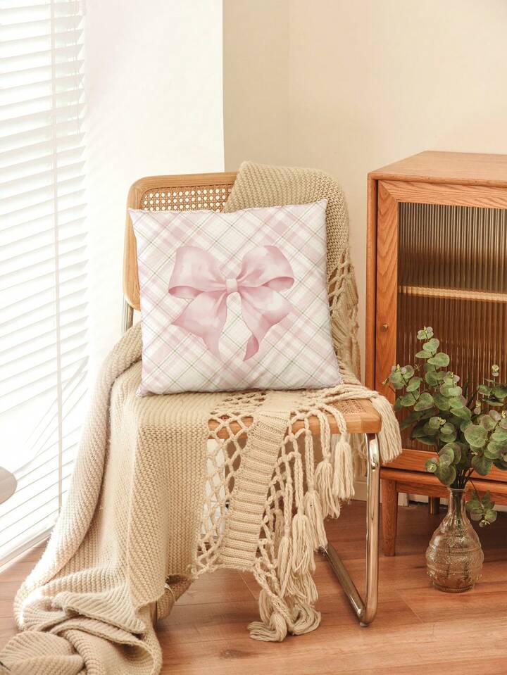 Kawaii غطاء وسادة مصمم بعقدة ووردية باللون الوردي الفاتح ورسمت يدويا. الغطاء الفخم المطبوع على شكل مربعات للوسادة الزخرفية للديكور اليومي في غرفة المعيشة وغرفة النوم والوسائد، ويناسب جميع المواسم.