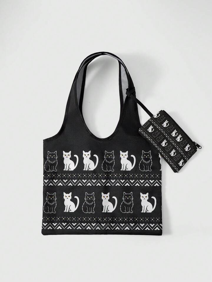Kawaii حقيبة تسوق مع محفظة صغيرة، مناسبة للطلاب الجامعيين/التسوق/السفر
