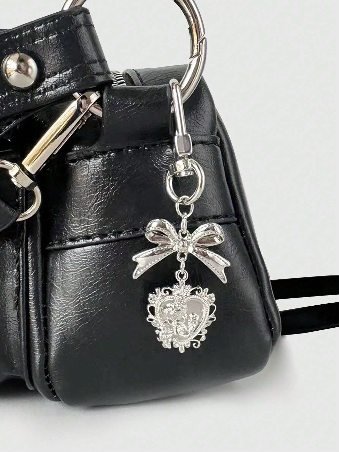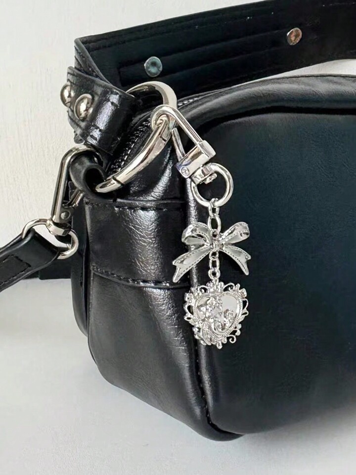 Kawaii قلادة قلب وريبطة عتيقة قطعة واحدة، اكسسوار ديكوري للحقيبة/الهاتف، سلسلة مفاتيح
