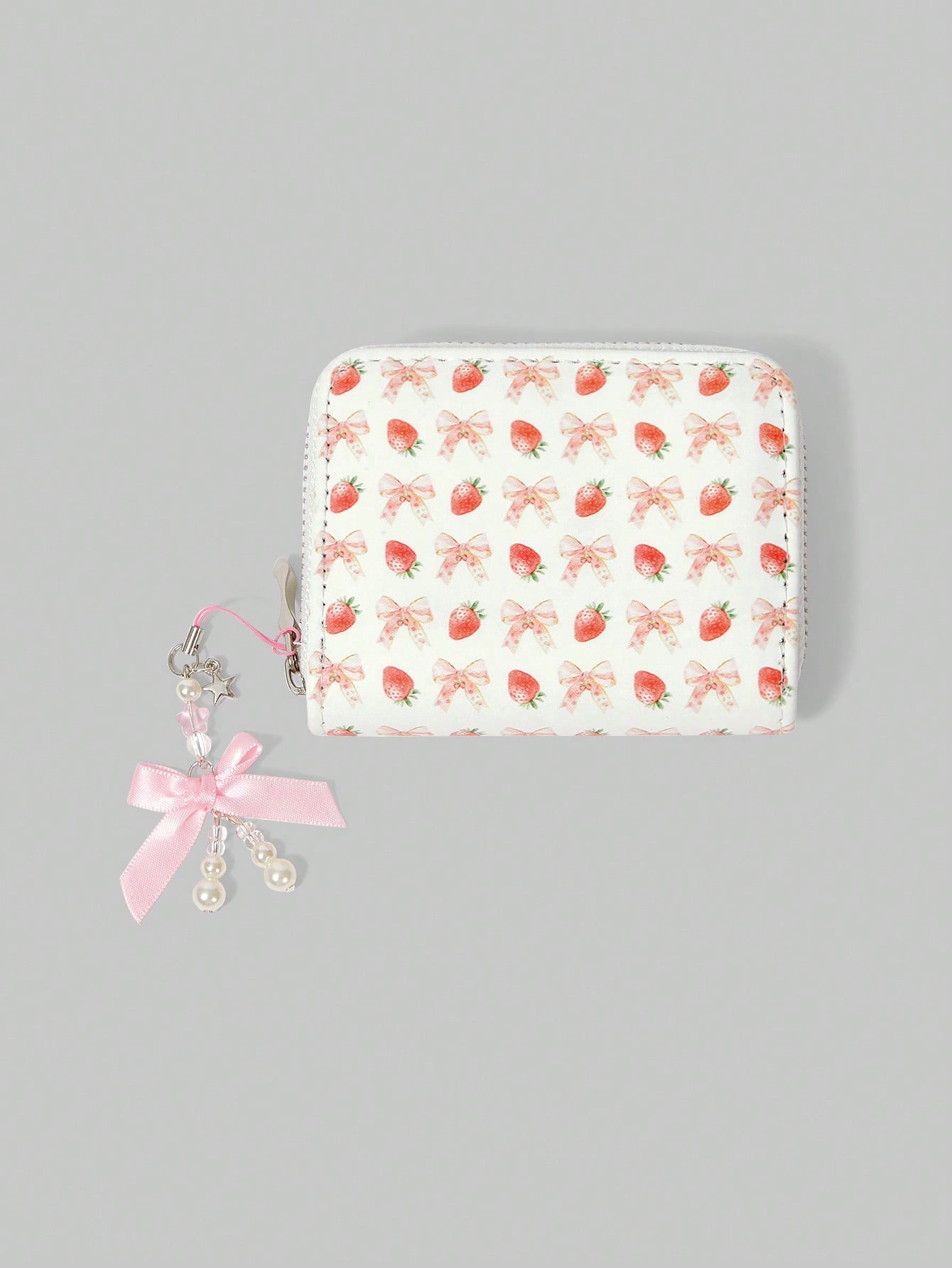 Kawaii حافظة عملة ذات رسمة فراولة مائية قطعة واحدة، محفظة بسحاب مزينة بفيونكة بسيطة للنساء