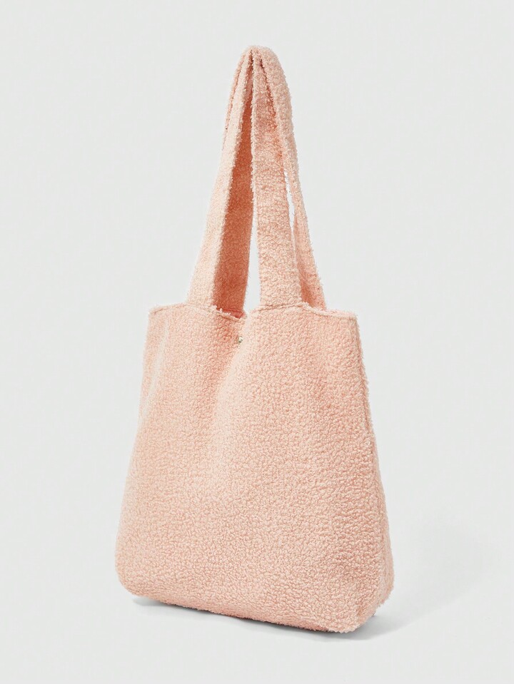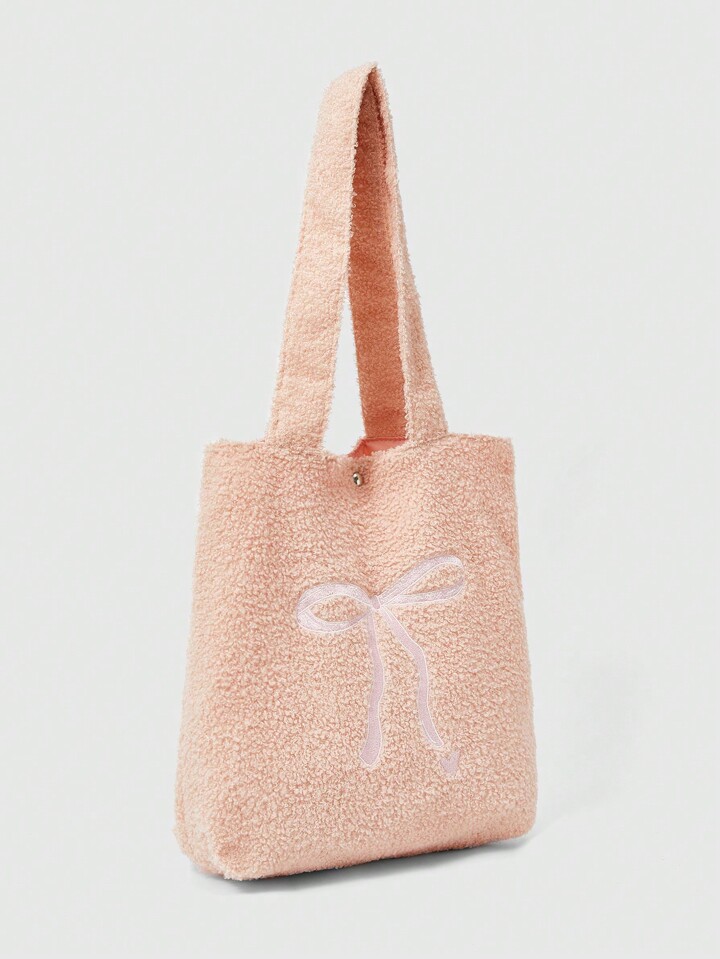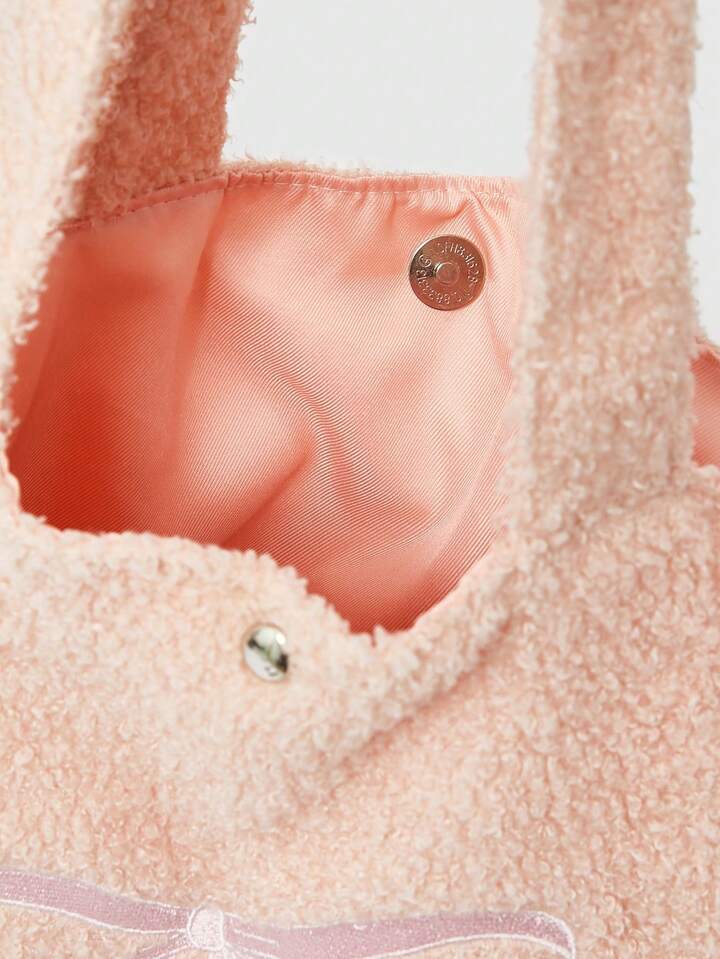Kawaii حقيبة يد شبكية للنساء مزينة بشريط مطرز من فرو صناعي قطعة واحدة
