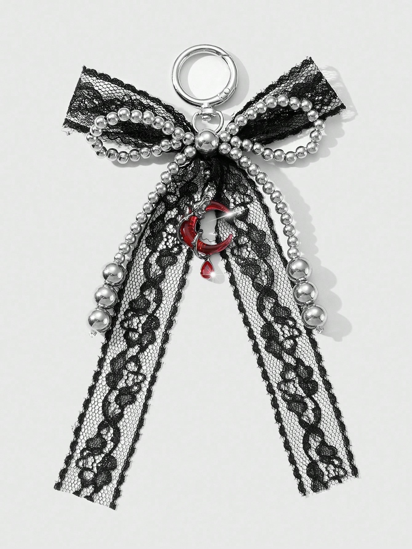 Kawaii 1 قطعة في طراز كاواي الغوطة المظلمة، عقد مصنوع يدويًا بالخرز والدانتيل، قلادة وردة وهلال القمر للدبابيس والحقائب، مناسبة للنساء/الفتيات للارتداء اليومي والهدايا العطلات