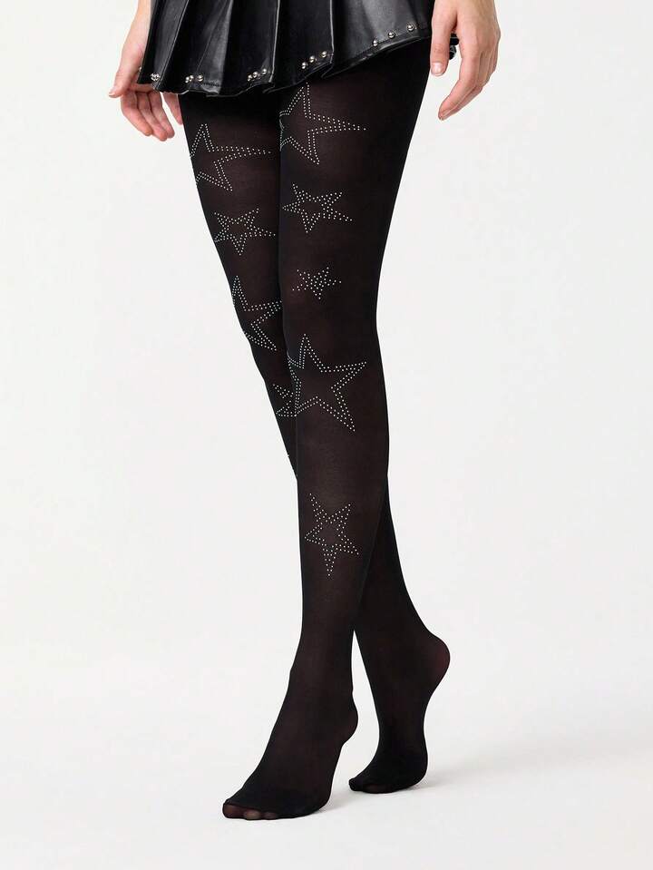 Kawaii زوجان من جوارب السبانديكس ذات نمط نجمي من الراين، جذابة و لطيفة للاستخدام اليومي, الحفلات, الرقص، محكمة للجسم