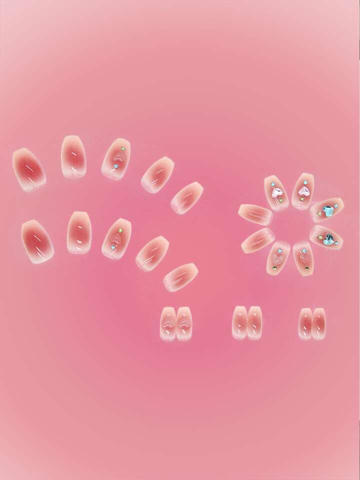 Kawaii 24 قطعة ثلاثي الأبعاد زخرفة قلب أظافر اصطناعية مع ورقة واحدة شريط