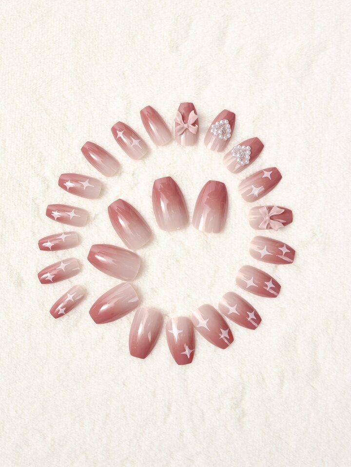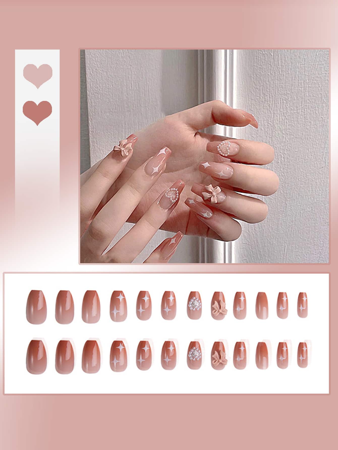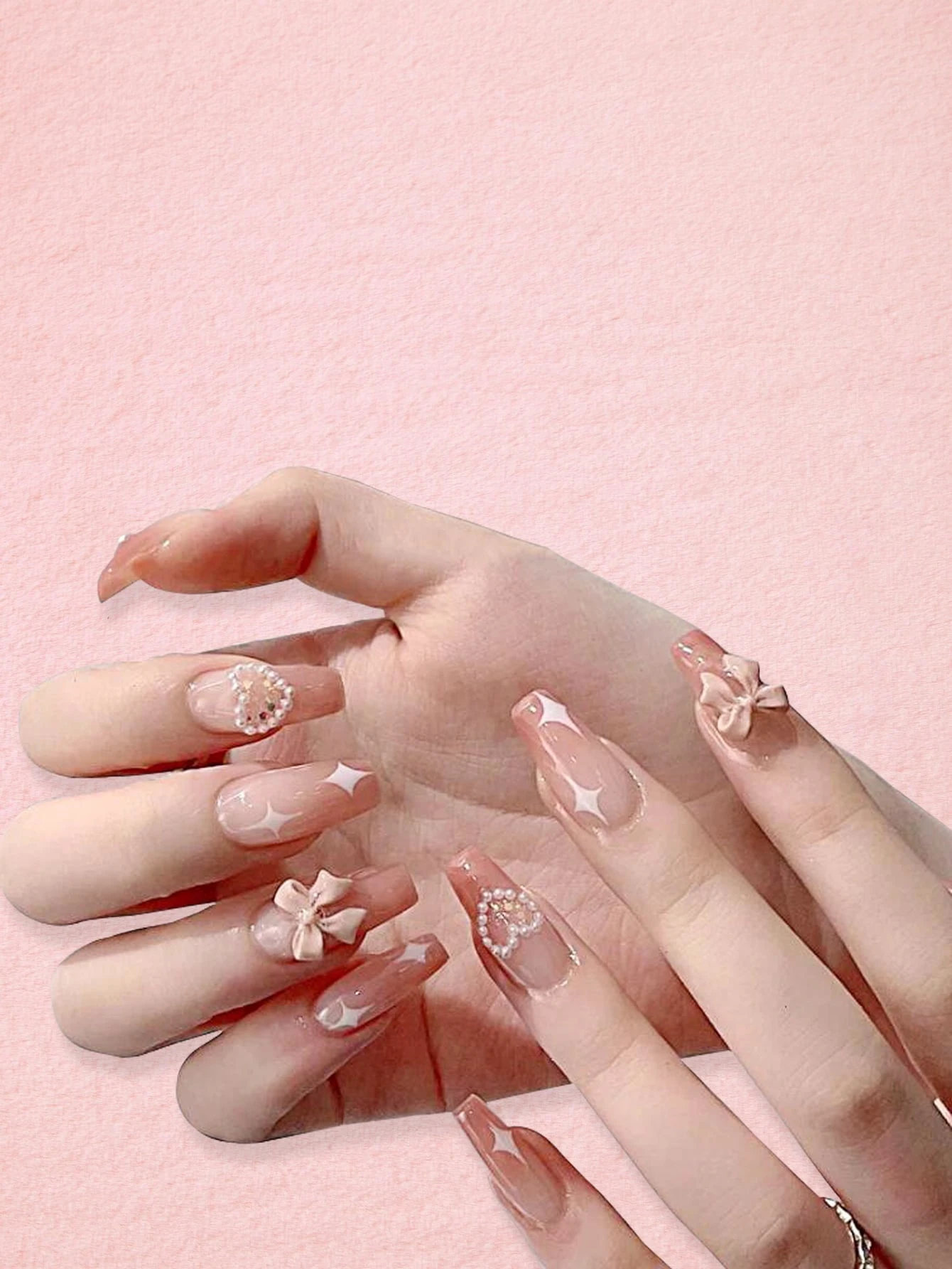 Kawaii أظافر اصطناعية ديكور فيونكة ولؤلؤ صناعي 24قطعة