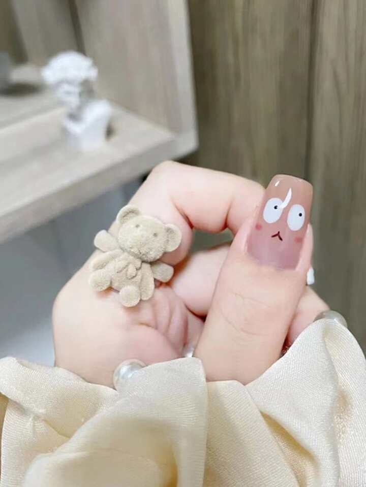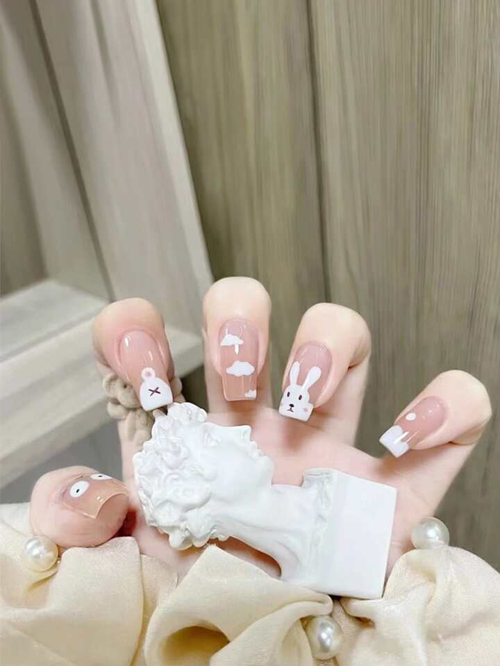 Kawaii 24 قطعة طويل نعش طباعة الأرنب أظافر اصطناعية و ورقة واحدة شريط
