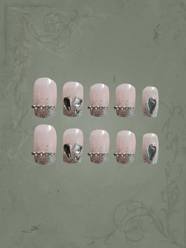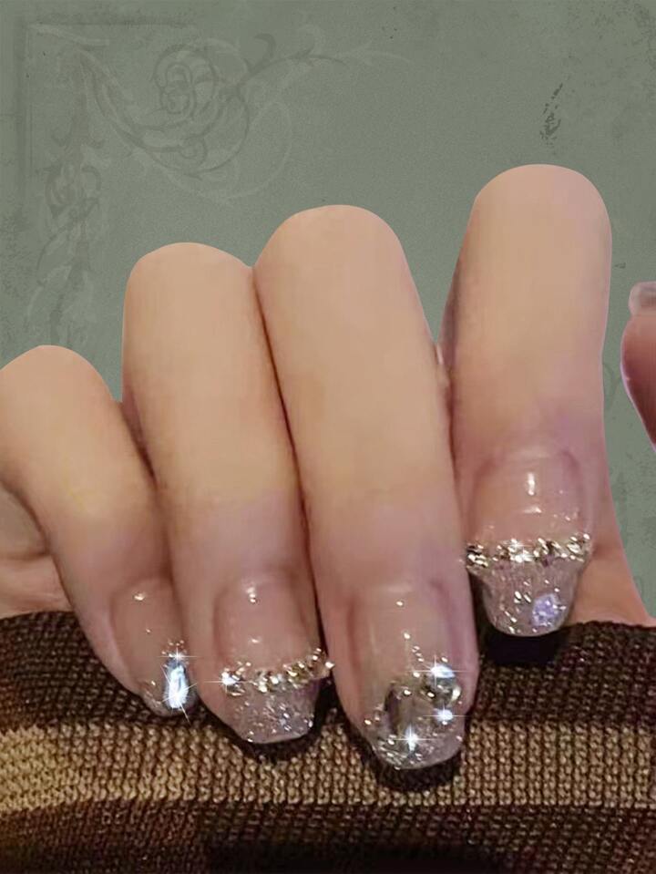 Kawaii 24 قطعة مربع ثلاثي الأبعاد بديكور حجر الراين أظافر اصطناعية و ورقة واحدة شريط