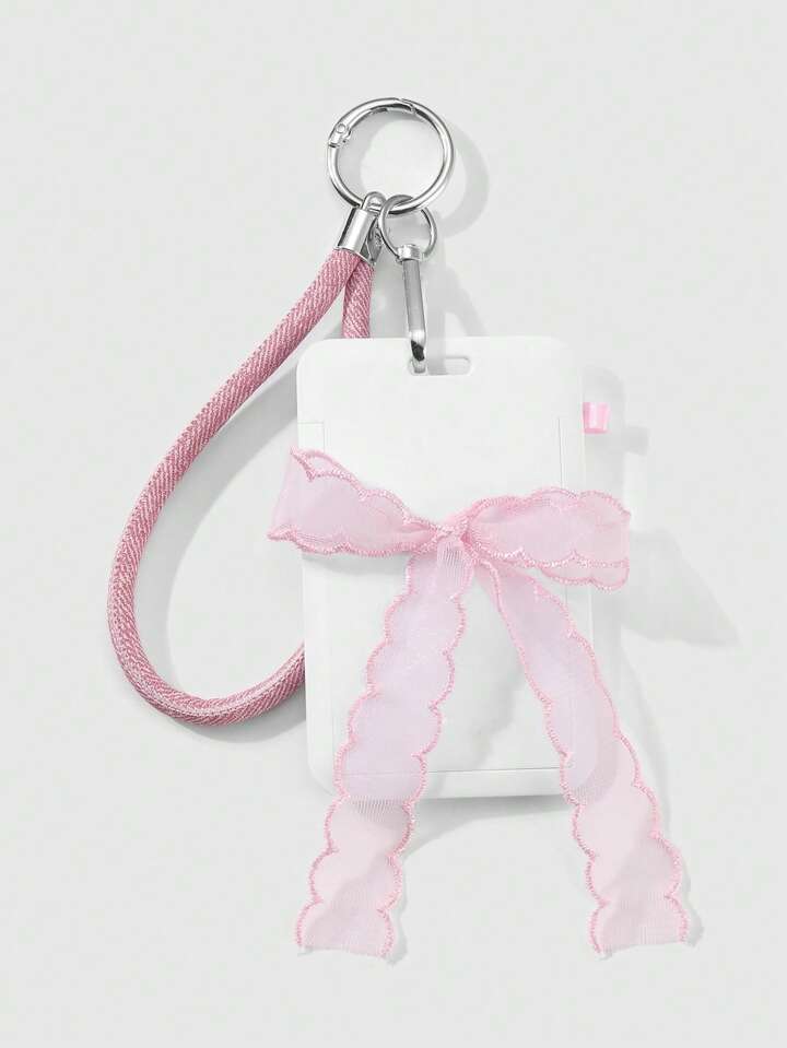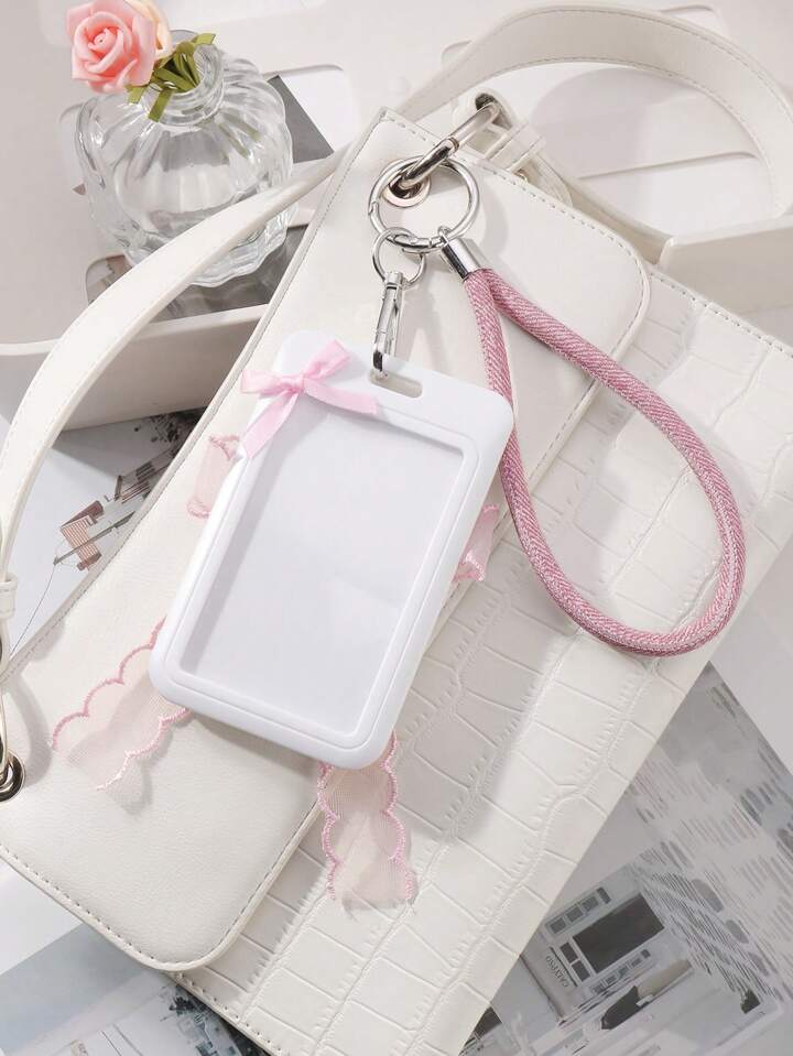 Kawaii مجموعة هدية تتضمن 2 قطعة حامل بطاقة هوية شفافة ذات شريط عنق مع فيونكة من الدانتيل عالي الجودة مناسب للموظفين والطلبة والاستخدام اليومي والمناسبات